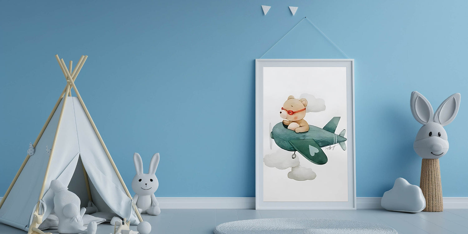 Teddy Bear Pilot Nursery Wall Art – Baby Room & Kids Decor Print