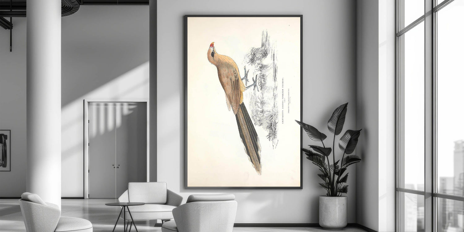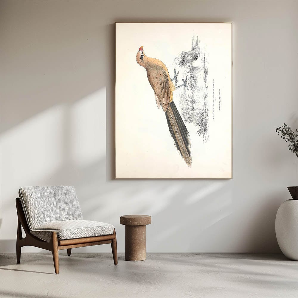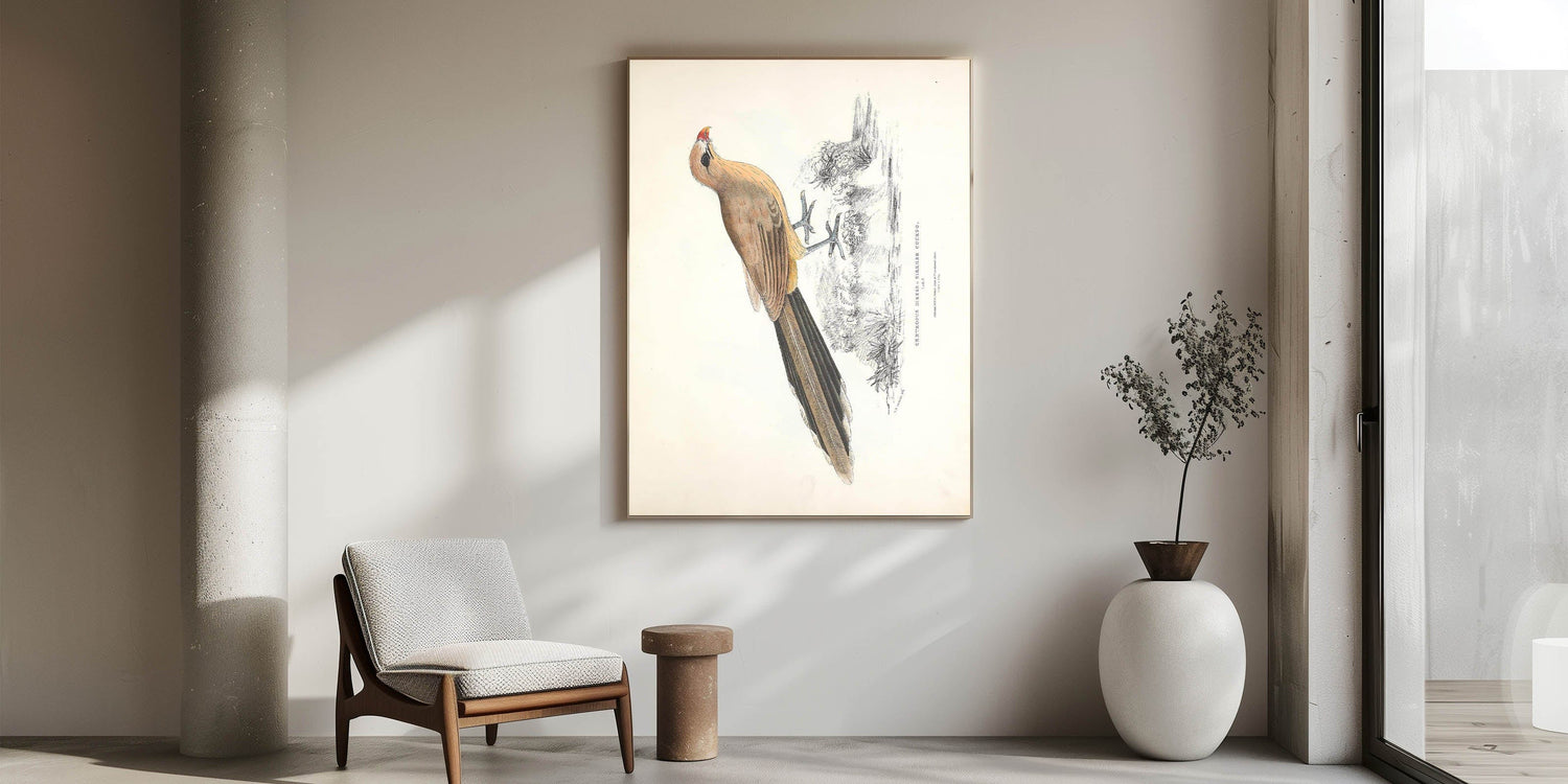 Add a touch of nature's elegance to your home with this Vintage Animal Art featuring the Centropus, or Cuckoo bird. This stunning illustration captures the intricate details of the bird’s feathers, bringing its grace to life in a vintage, retro style. Ideal for those who appreciate fine art and the beauty of wildlife, this piece will elevate any room with its timeless charm.
