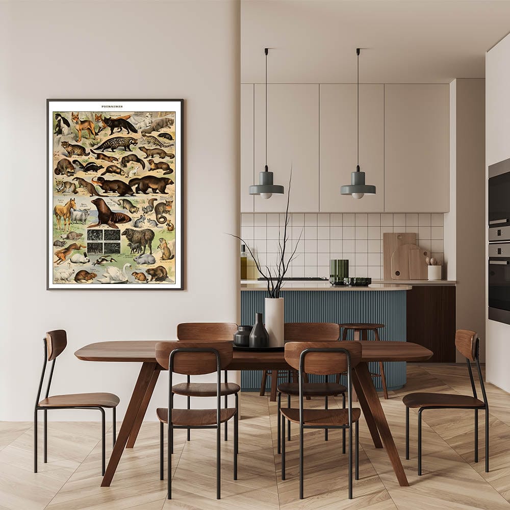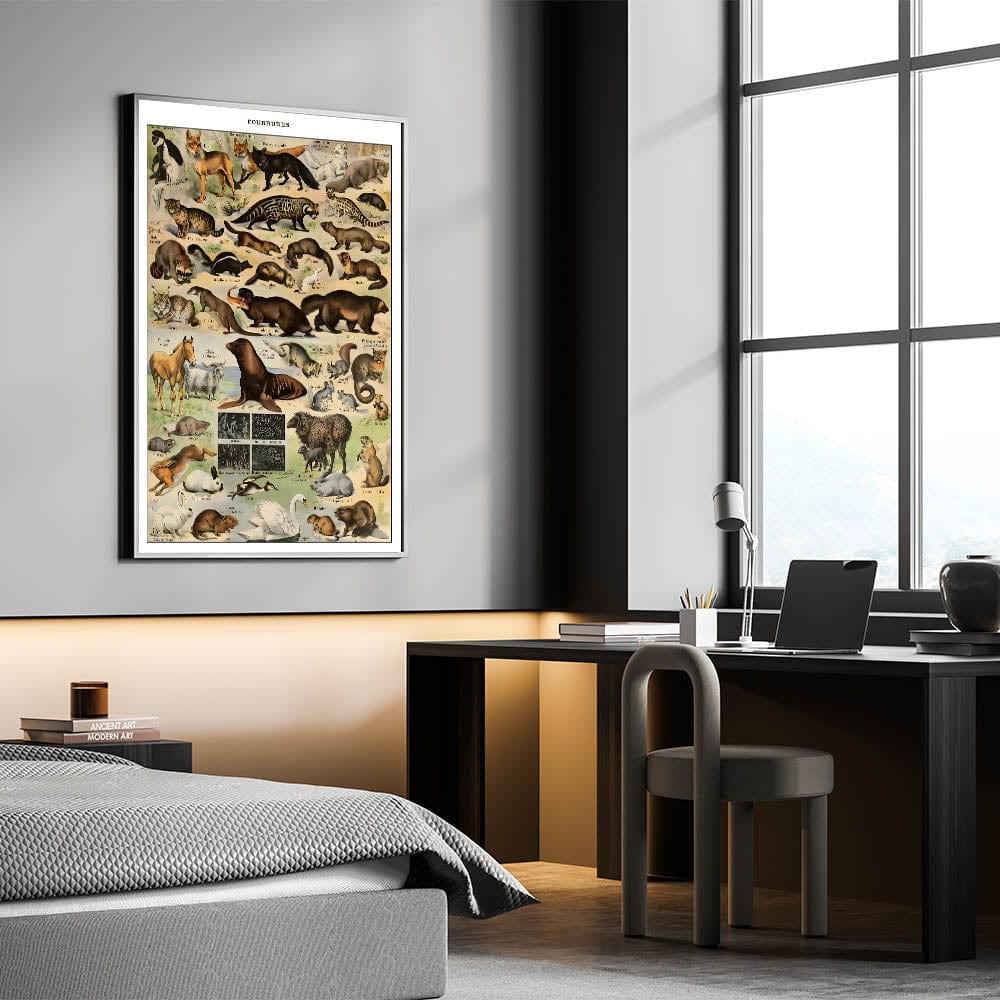 Add a touch of nature to your home with this exquisite Vintage Animal Art print. Featuring a stunning collection of animal illustrations, this piece showcases a wide array of creatures, from wild cats like the lynx and wildcat to marine life like the seal and otter. Each illustration is meticulously crafted to highlight the natural beauty of the animals, creating a timeless display for any room. Perfect for those who appreciate both vintage charm and detailed nature-inspired artworks, this print will bring life to your walls.