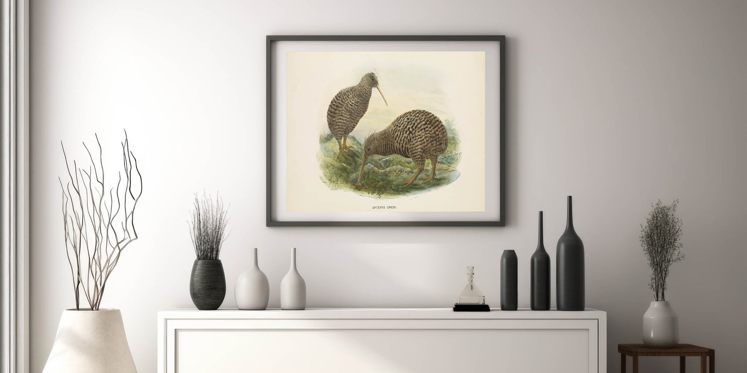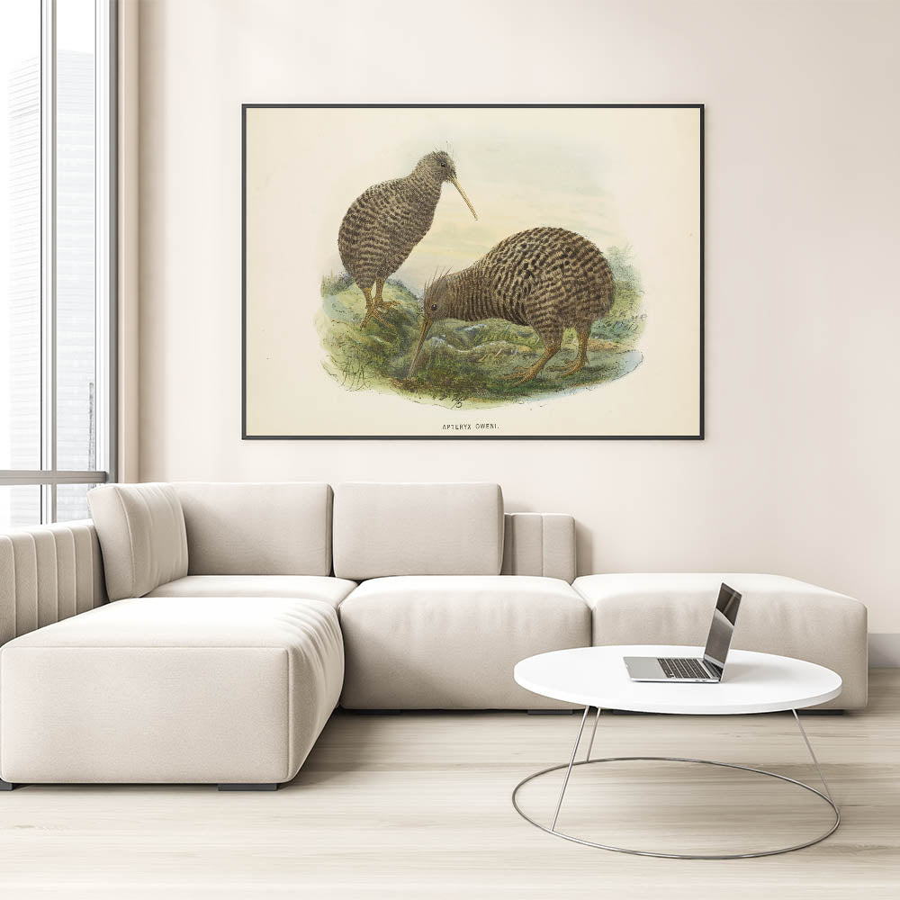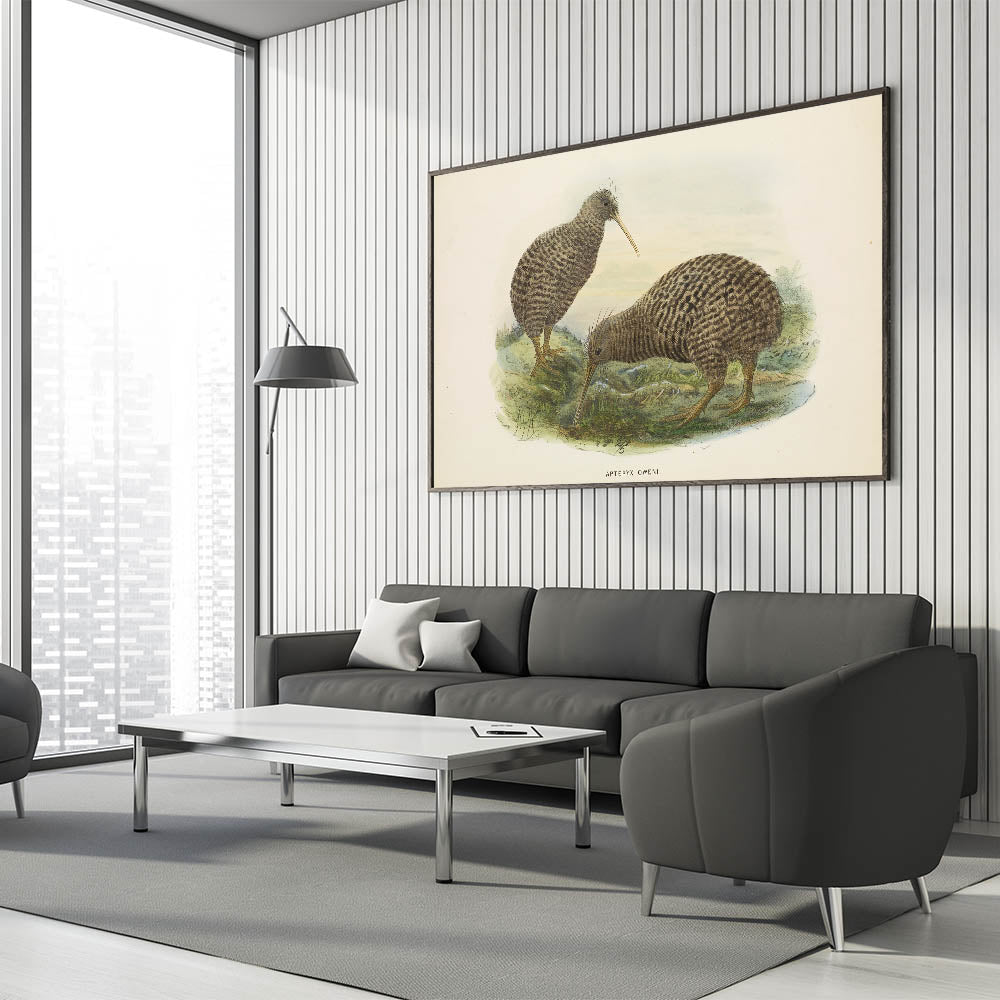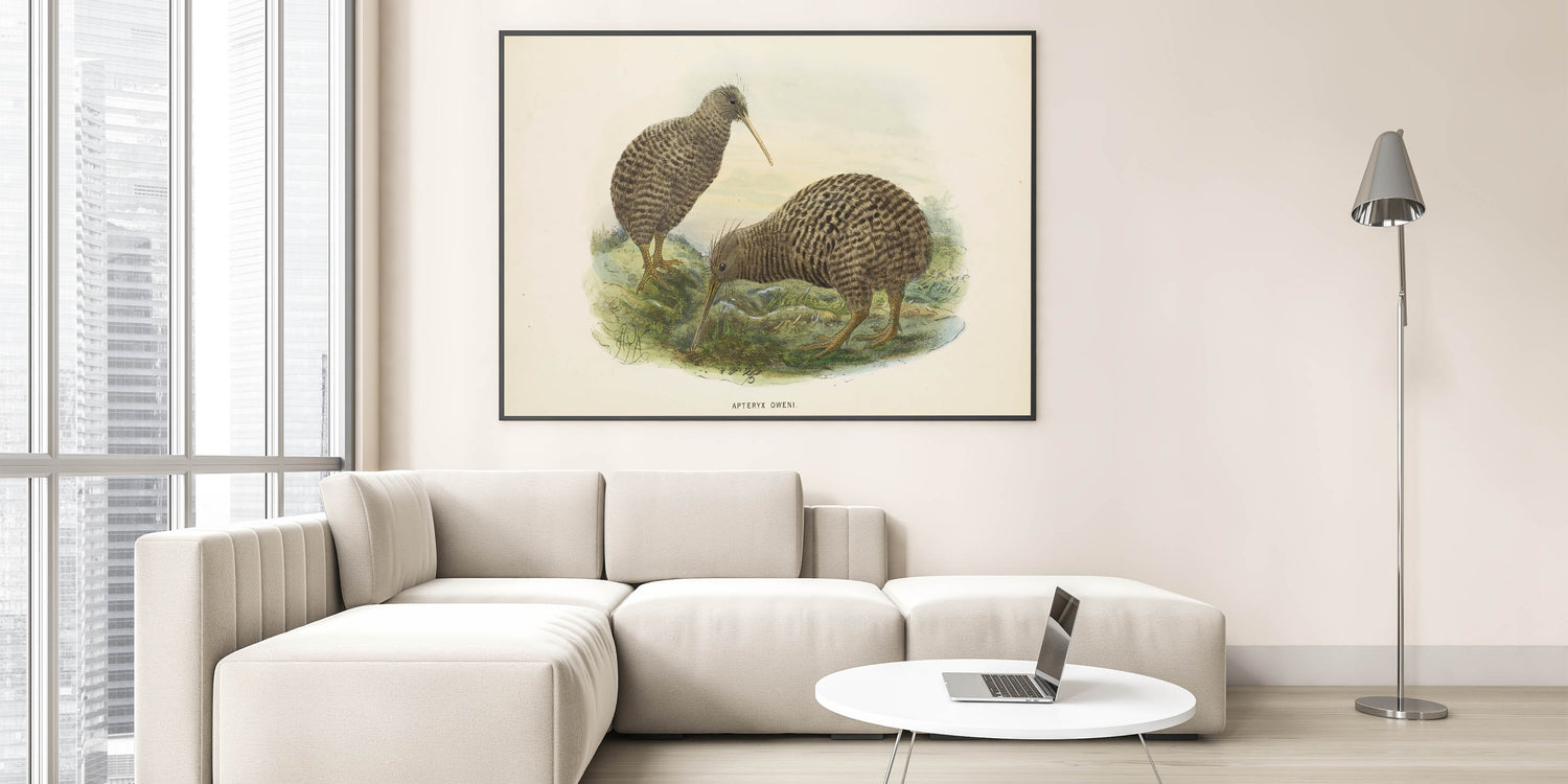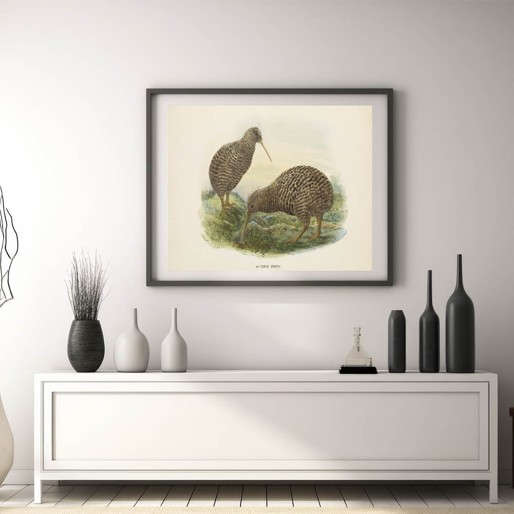 Celebrate the charm of nature with this stunning vintage animal art featuring two kiwi birds, Apteryx Owen. This beautifully detailed nature-inspired illustration captures the unique characteristics of these fascinating birds. Ideal for anyone who appreciates vintage animal art or unique animal art styles, this piece will bring a touch of the wild to any room.