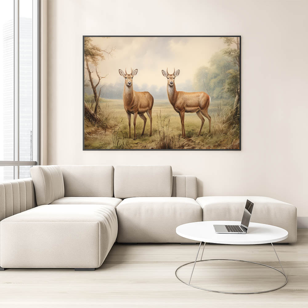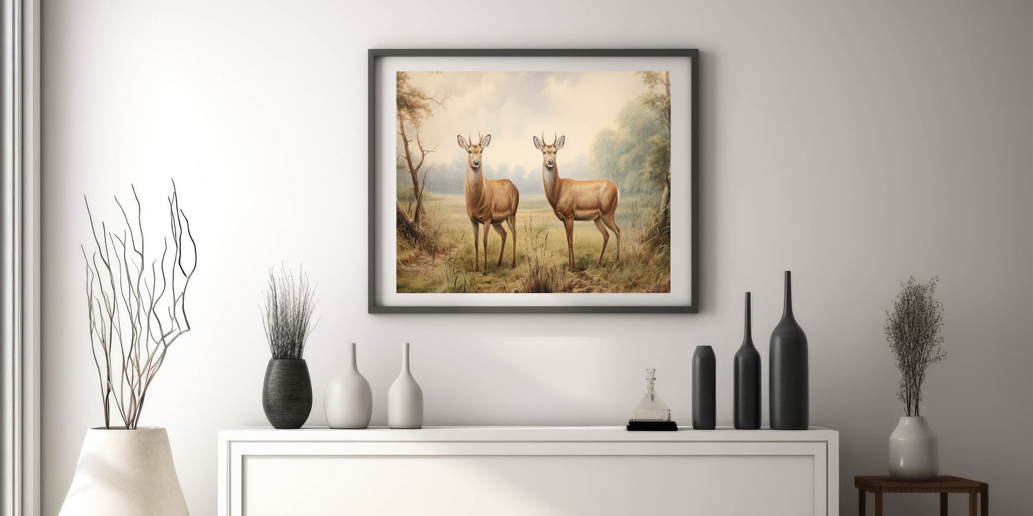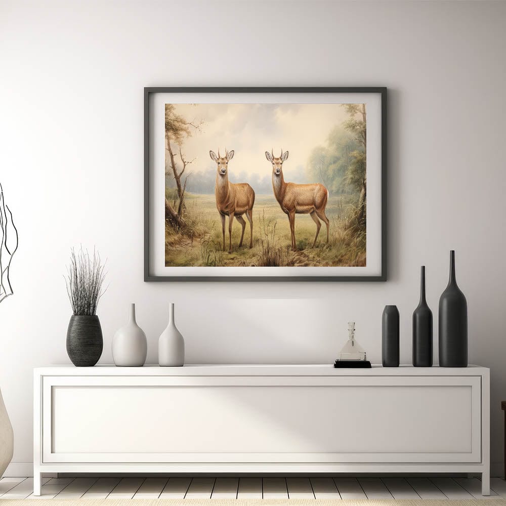 Vintage Animal Art - Majestic Deer in Serene Landscape