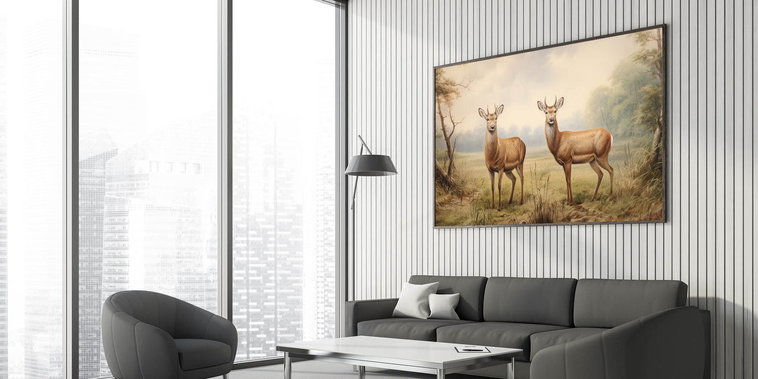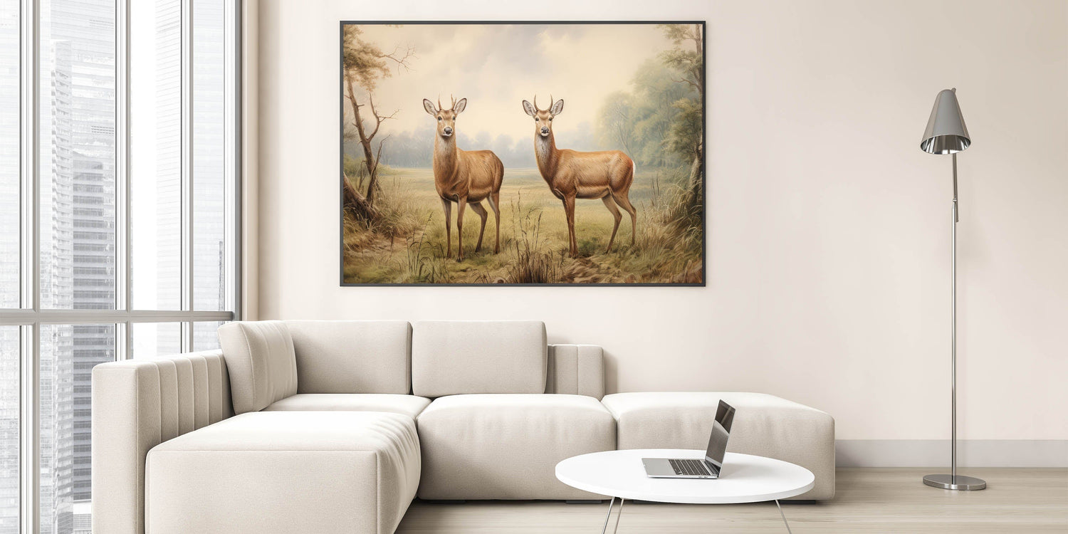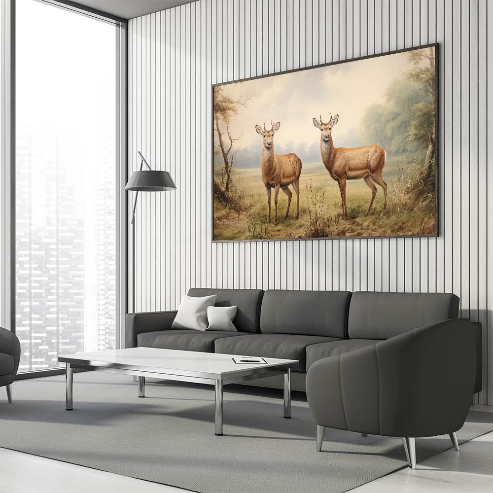 Vintage Animal Art - Majestic Deer in Serene Landscape