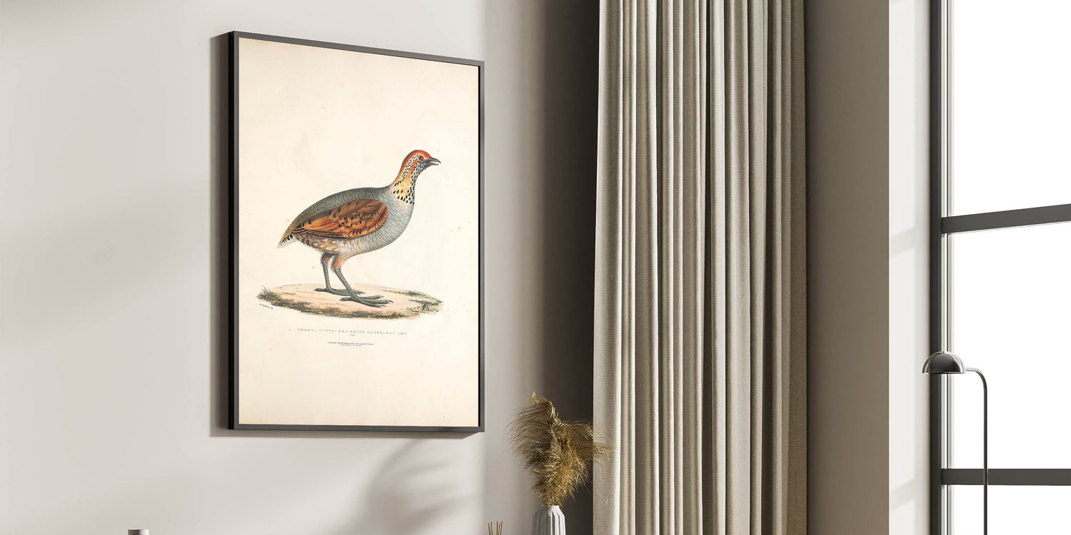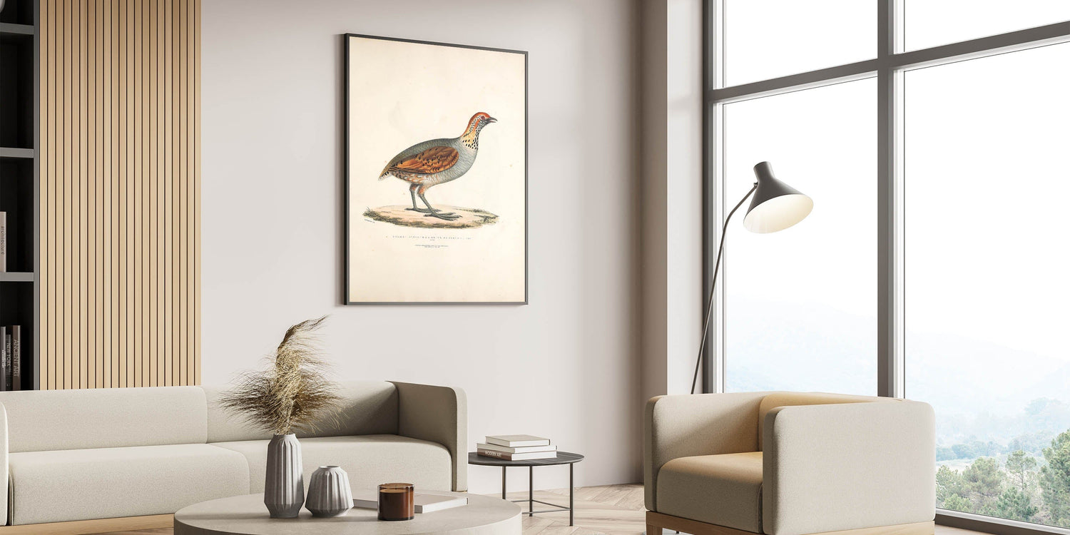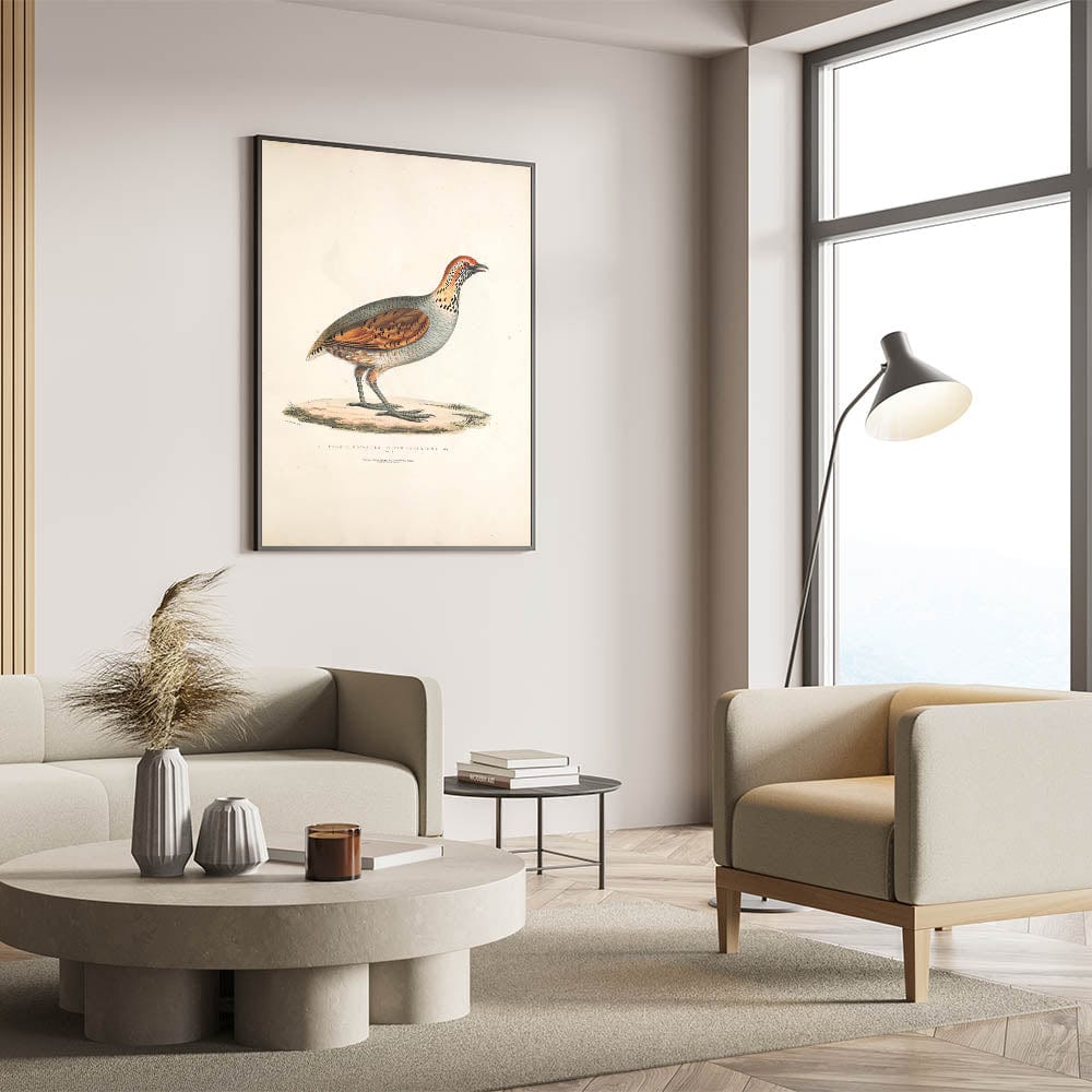 This Olive Partridge print is perfect for a variety of spaces, whether displayed in your living room, office, or study. It brings timeless beauty and a unique touch of nature to your decor.