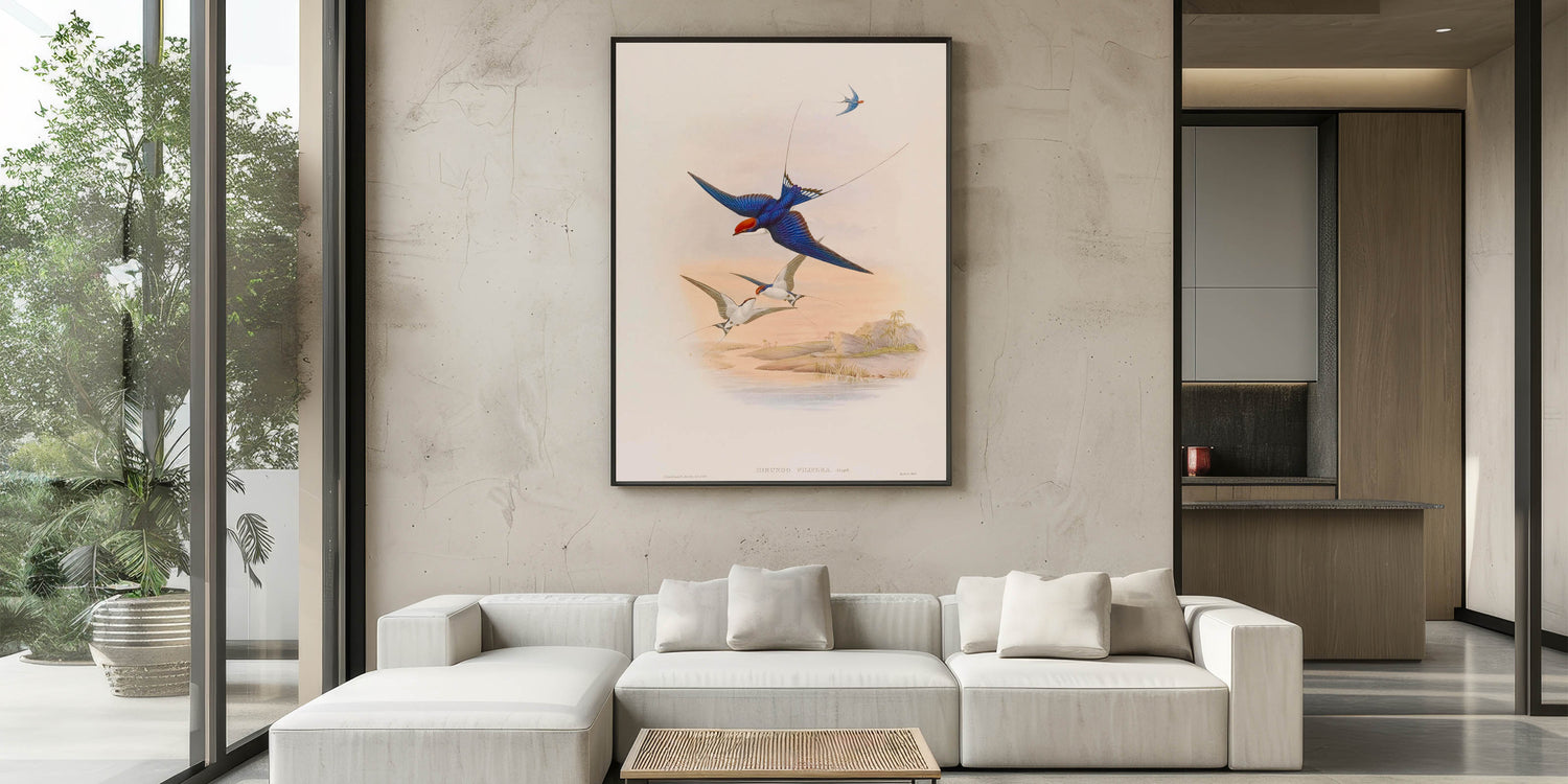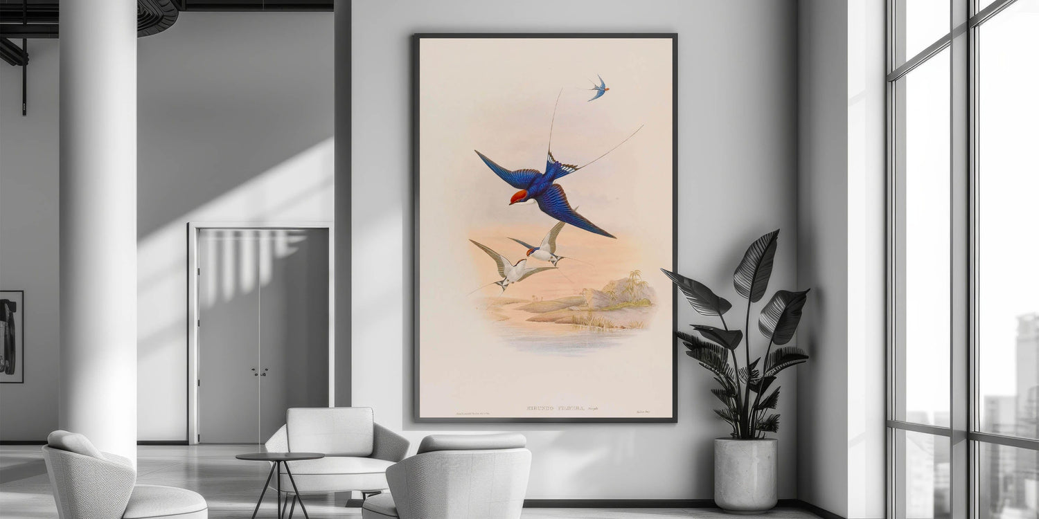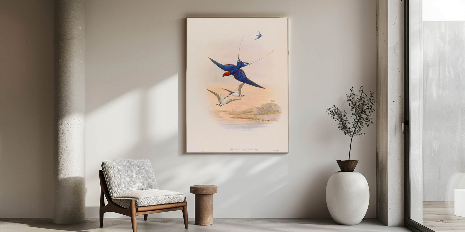 Capture the beauty of nature with this captivating swallow illustration, bringing the freedom of flight into your home.