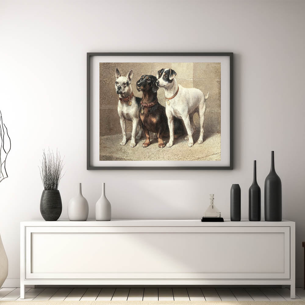 - Timeless Animal Art Prints showcasing three dogs in a vintage portrait.