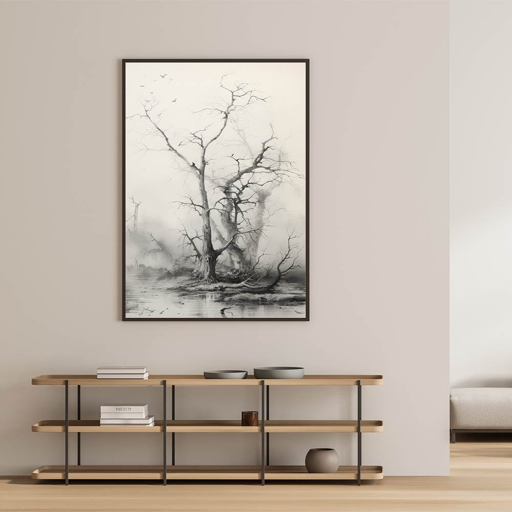 - Atmospheric Design: The foggy backdrop and silhouette of the tree bring a sense of serenity and intrigue to any room.