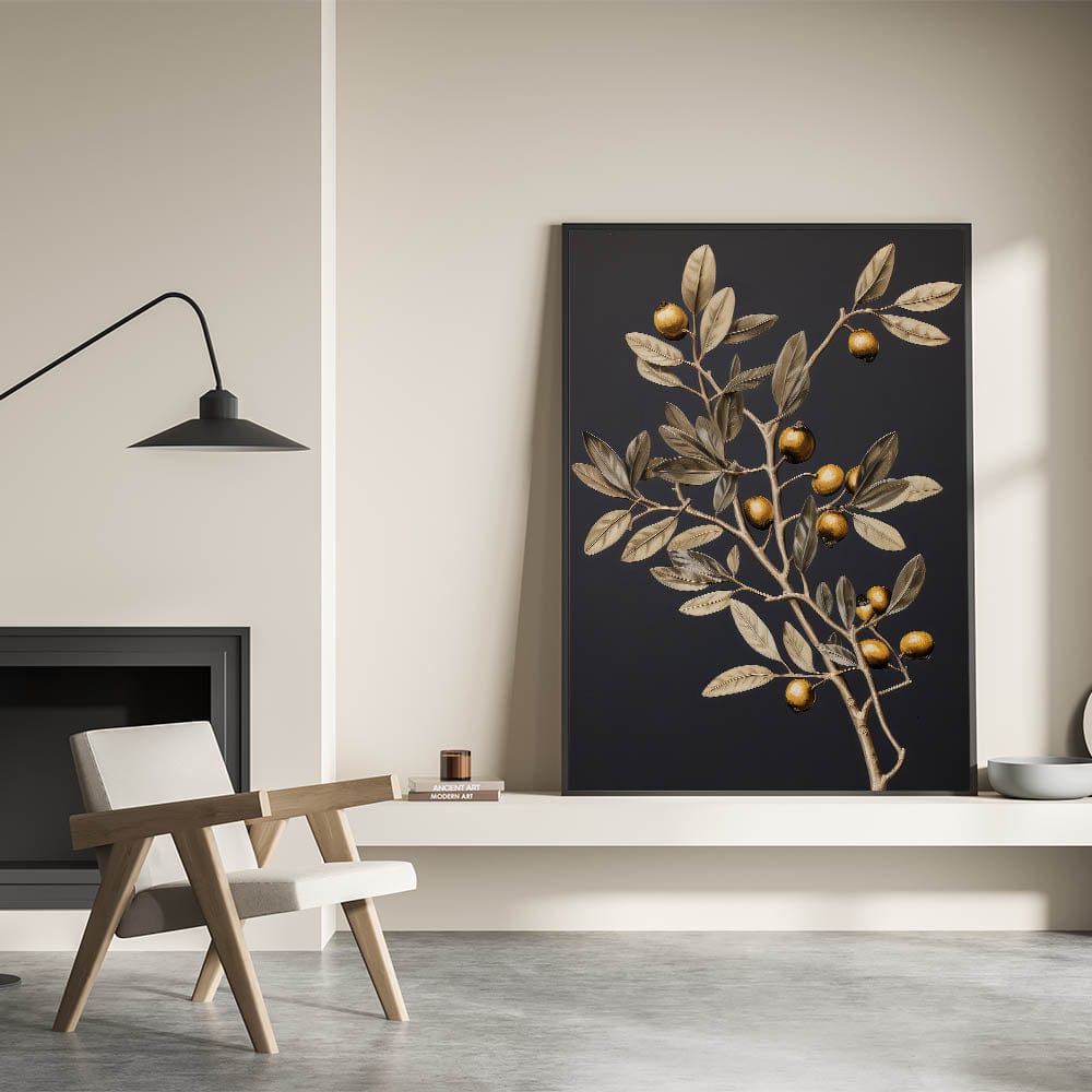 Vintage Botanical Art Prints – Olive Branch with Golden Olives