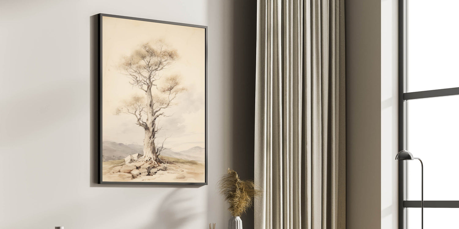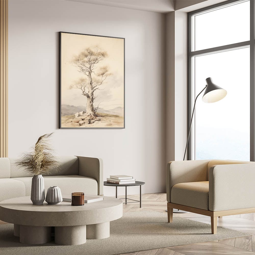 This Vintage Botanical Art Print showcases a solitary tree in a serene landscape, captured with delicate brushstrokes and subtle tones. The timeless elegance of this piece evokes a sense of quiet strength and natural beauty, perfect for creating a peaceful atmosphere in any room. The soft, muted color palette and gentle brushwork invite a reflective, calming vibe, making it ideal for vintage-style, nature-inspired, or minimalist decor.