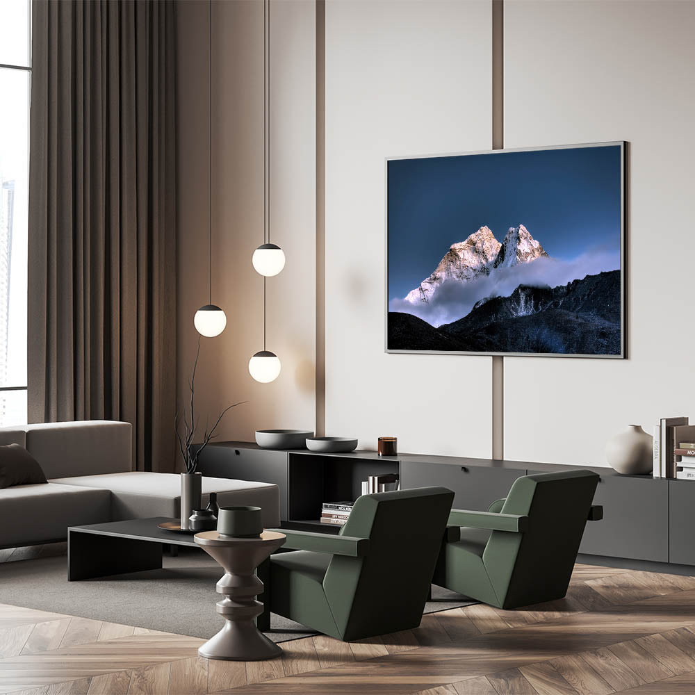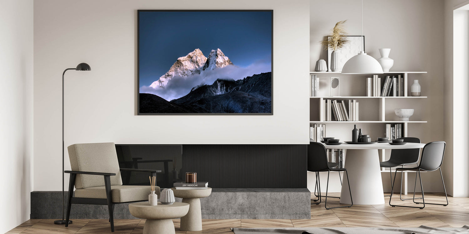 Elevate your living or workspace with this moonlit Everest print, offering a peaceful yet powerful presence that encourages reflection and admiration.