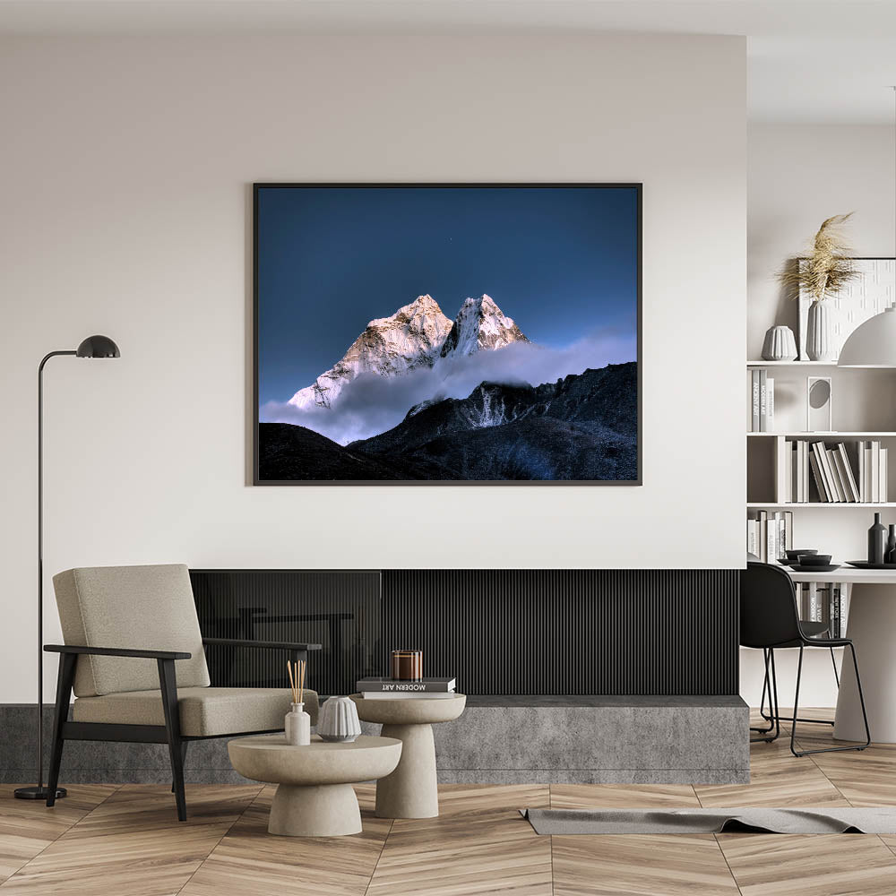 - Captivating Night View: Experience the tranquility of Everest at night through this exquisite print.