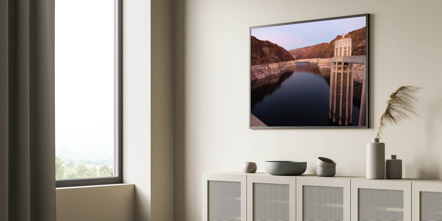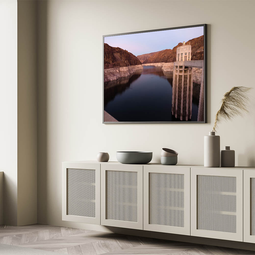 - High-quality Hoover Dam canvas available in stretched, framed, or rolled options