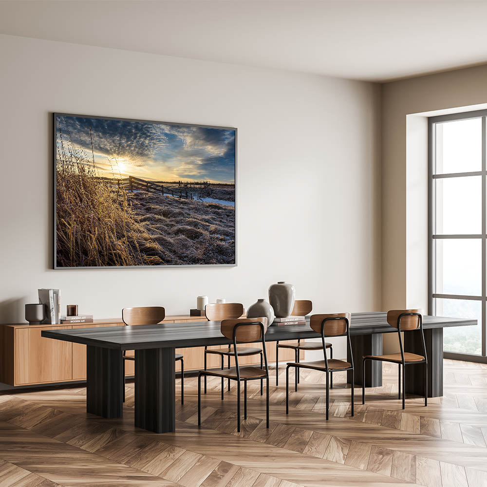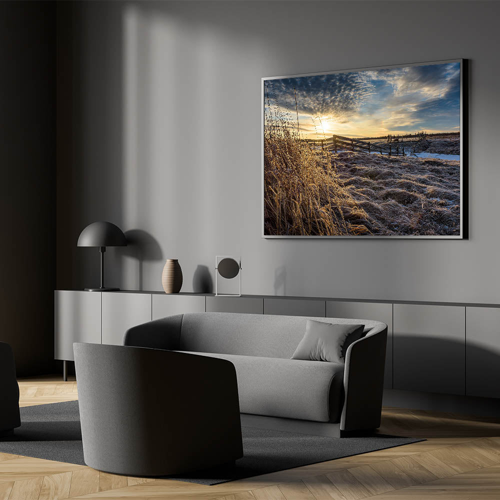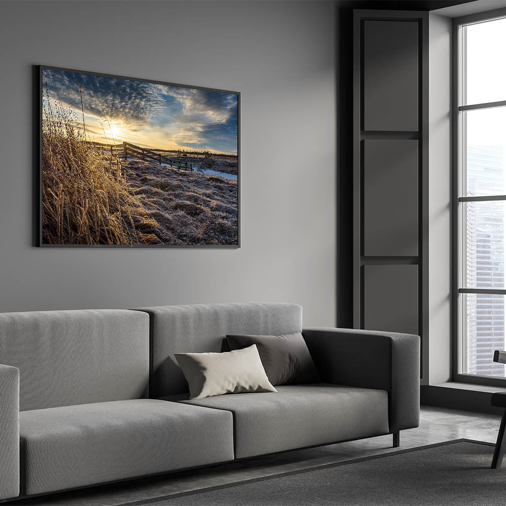 Whether you’re looking for a serene addition to your home or a thoughtful gift for someone who loves rural landscapes, this frosty sunrise artwork will bring warmth and tranquility to any room.