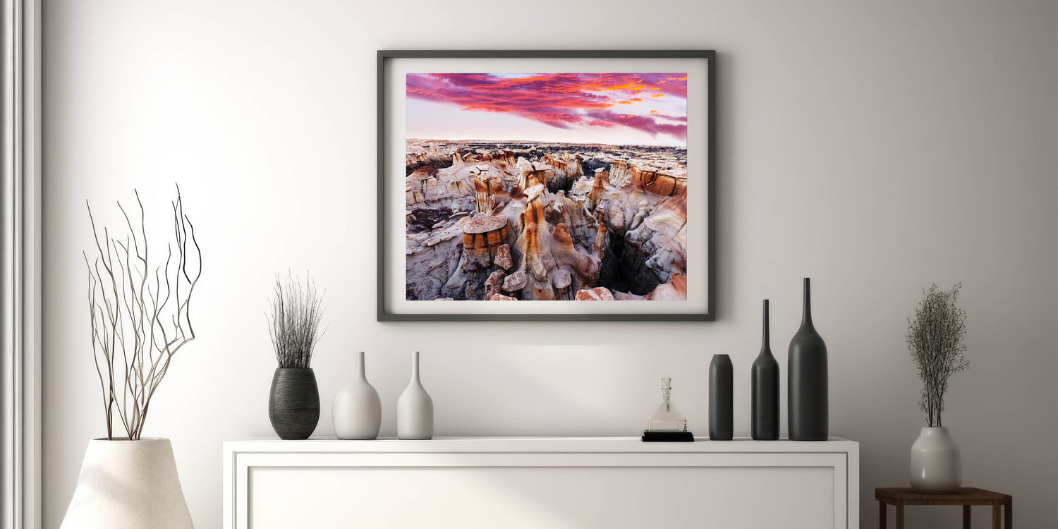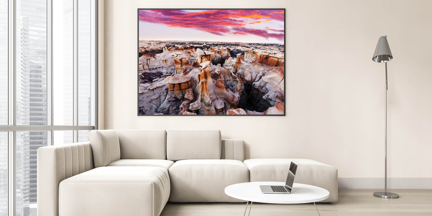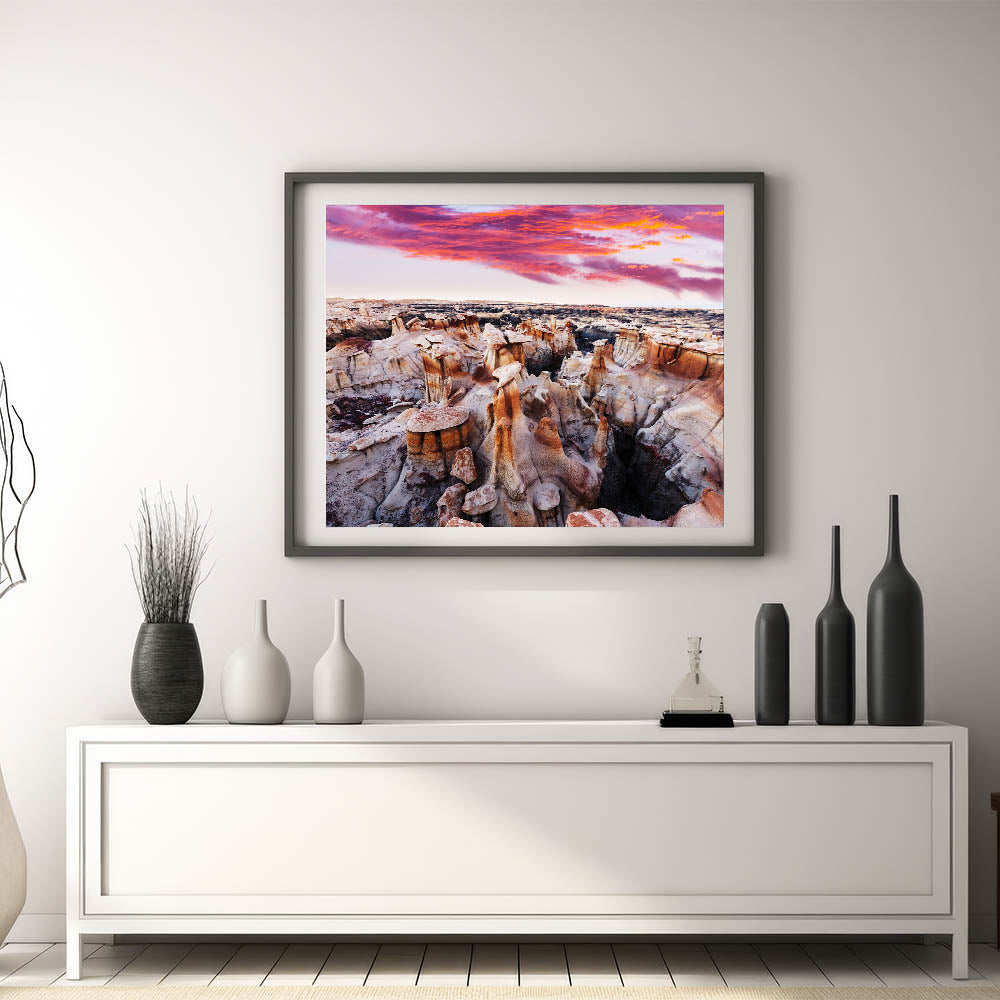 Southwestern Art – Stunning Hoodoos at Sunrise in New Mexico Desert