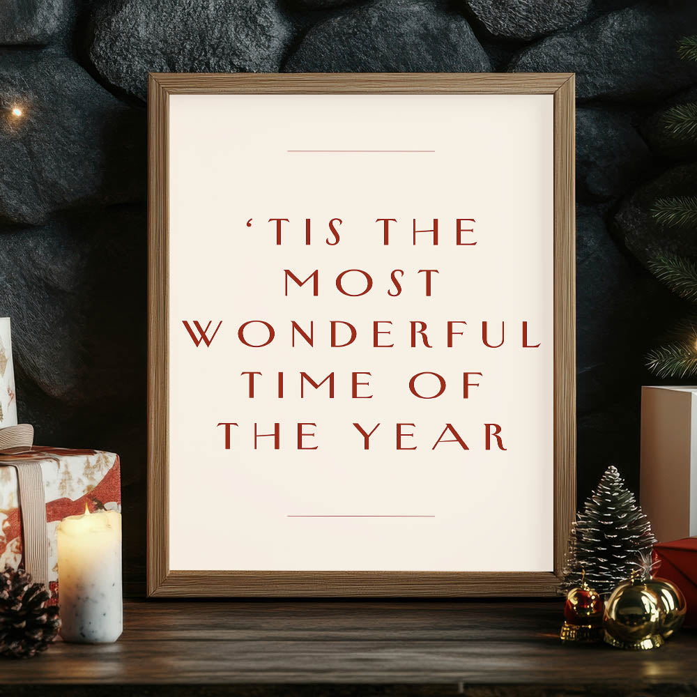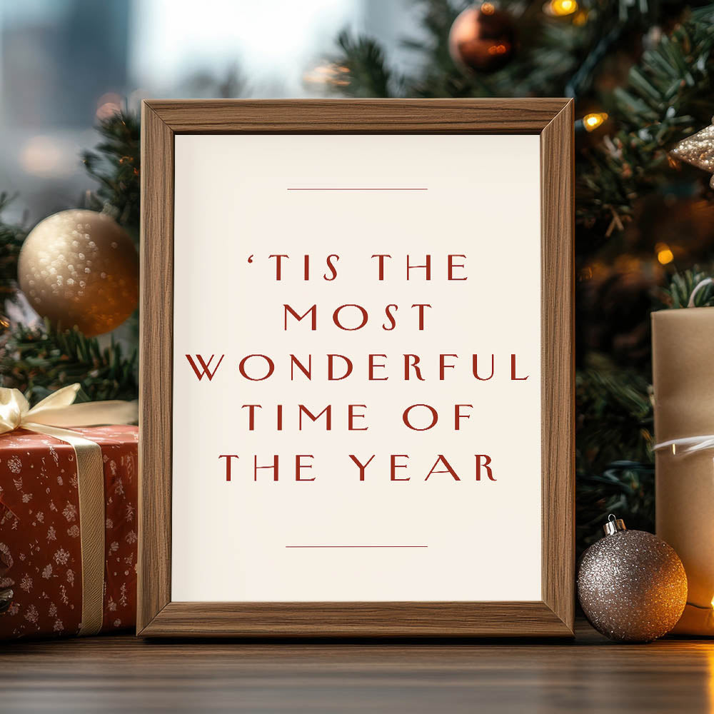 Celebrate the holiday season with this elegant New Year Wall Art, featuring the timeless phrase ‘Tis the Most Wonderful Time of the Year. This minimalist yet festive New Year Canvas Art is perfect for adding warmth and charm to any space, making it an ideal New Year Wall Decor for homes, offices, and festive gatherings.
