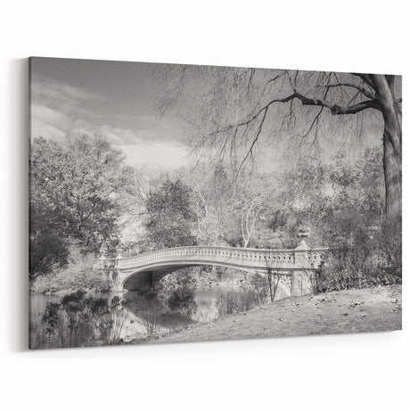• New York City's Brooklyn Bridge depicted in grayscale on a large stretched canvas, suitable for kitchen wall art.