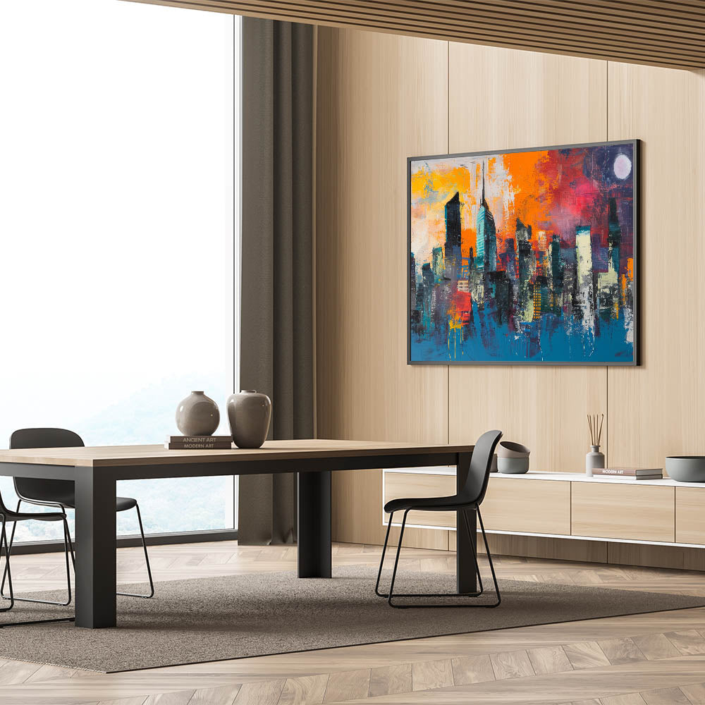 Whether you're looking to create a focal point in your living room, office, or bedroom, this abstract New York City wall decor piece offers a bold and artistic representation of the city that never sleeps.