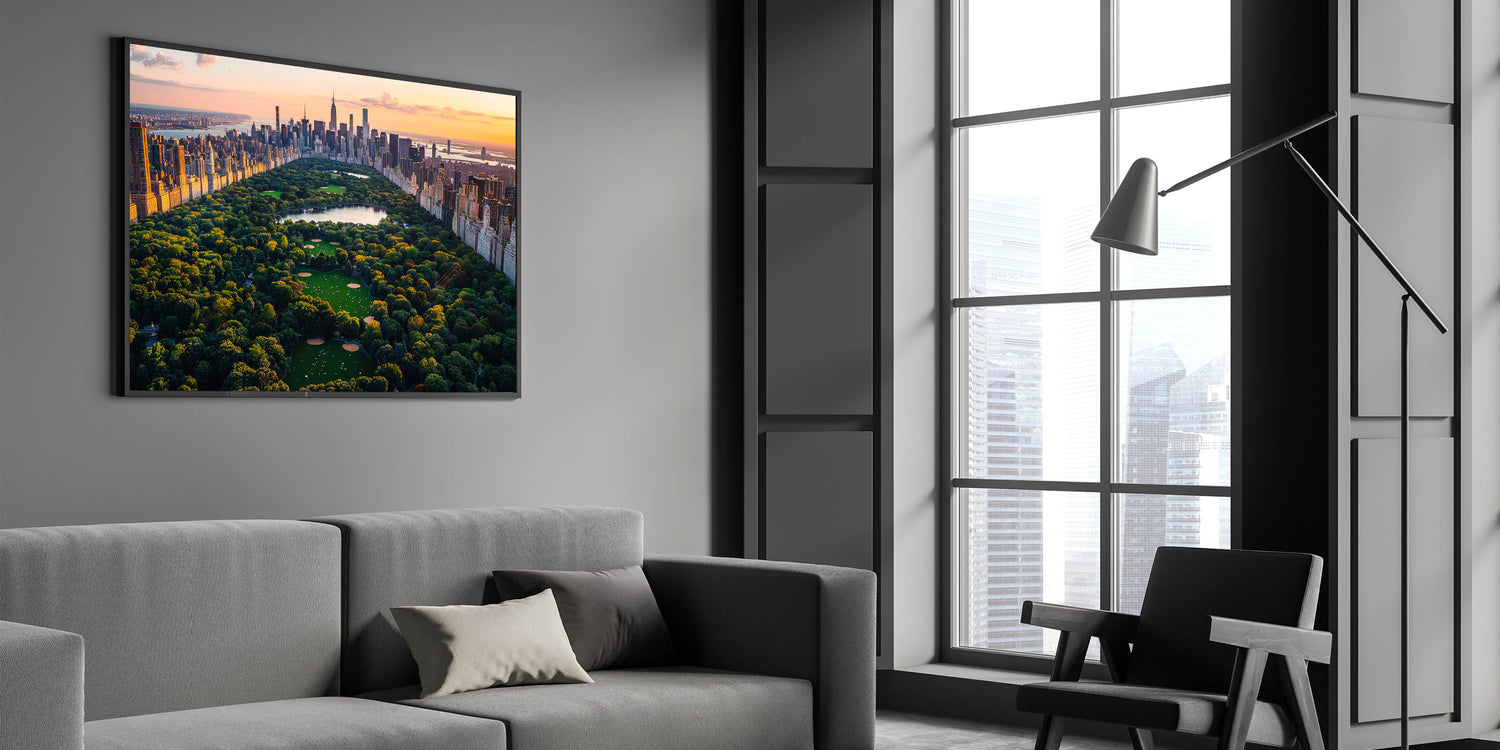 • Aerial Beauty: Central Park canvas print featuring a vivid sunset view of NYC, blending natural beauty with the cityscape.