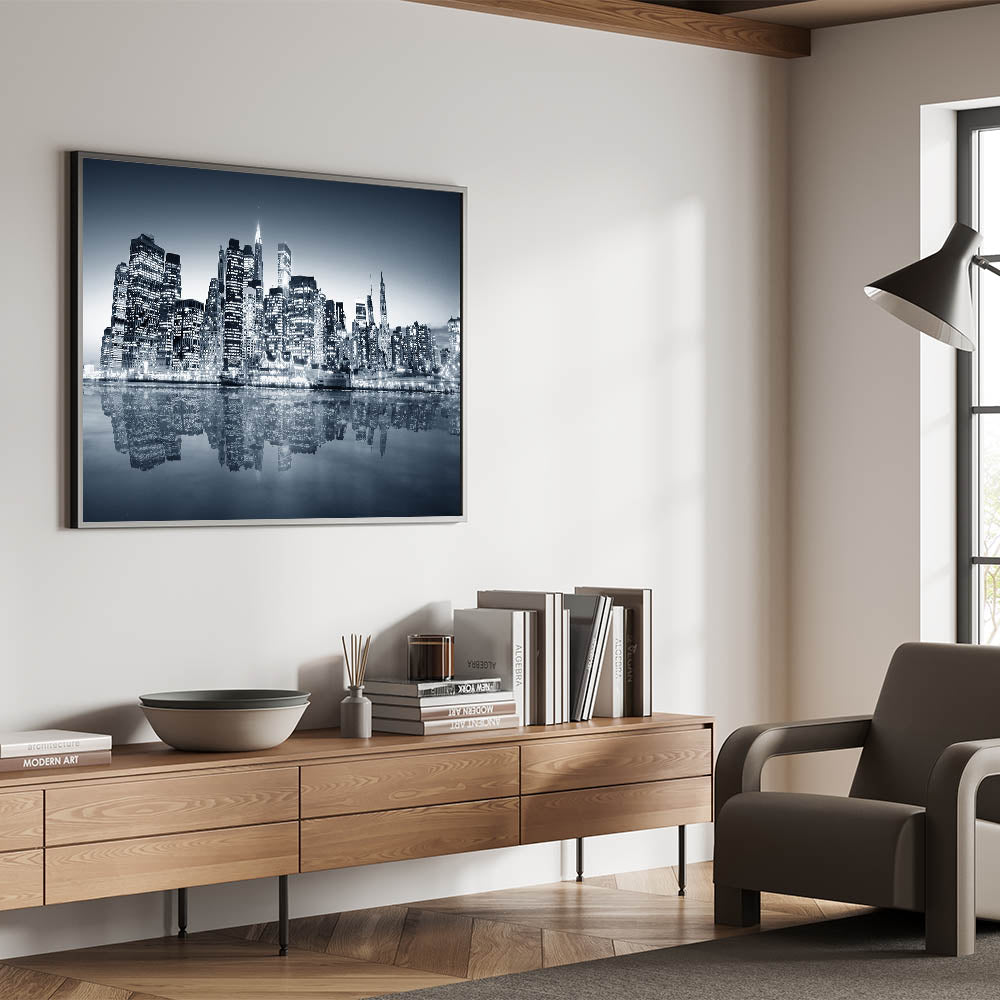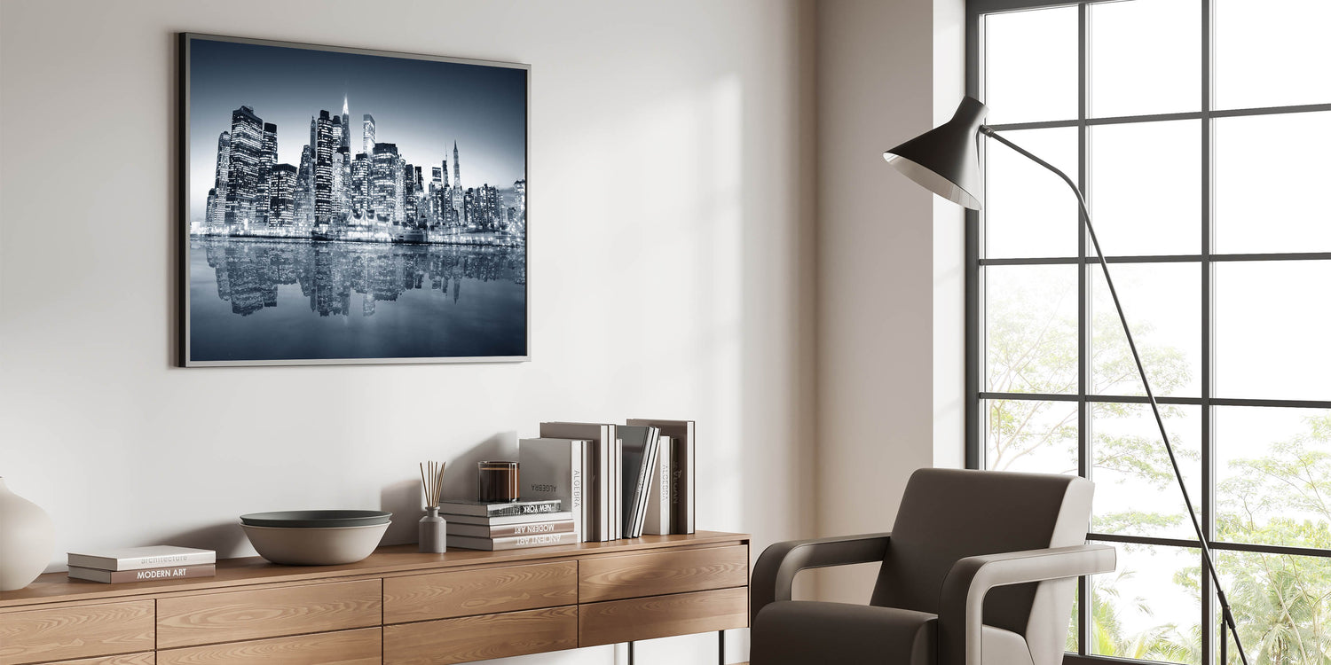 - High-quality Manhattan art prints available on stretched canvas, framed canvas, acrylic glass, and rolled prints.