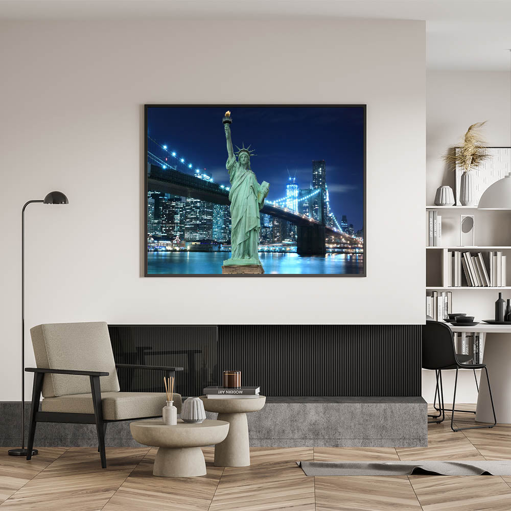 Statue of Liberty Art - New York City Skyline Night Wall Decor
