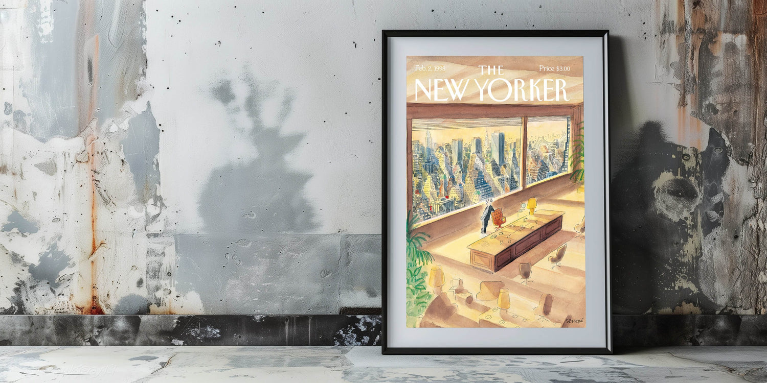 New Yorker Poster - 1998 Office Skyline View with Executive Art