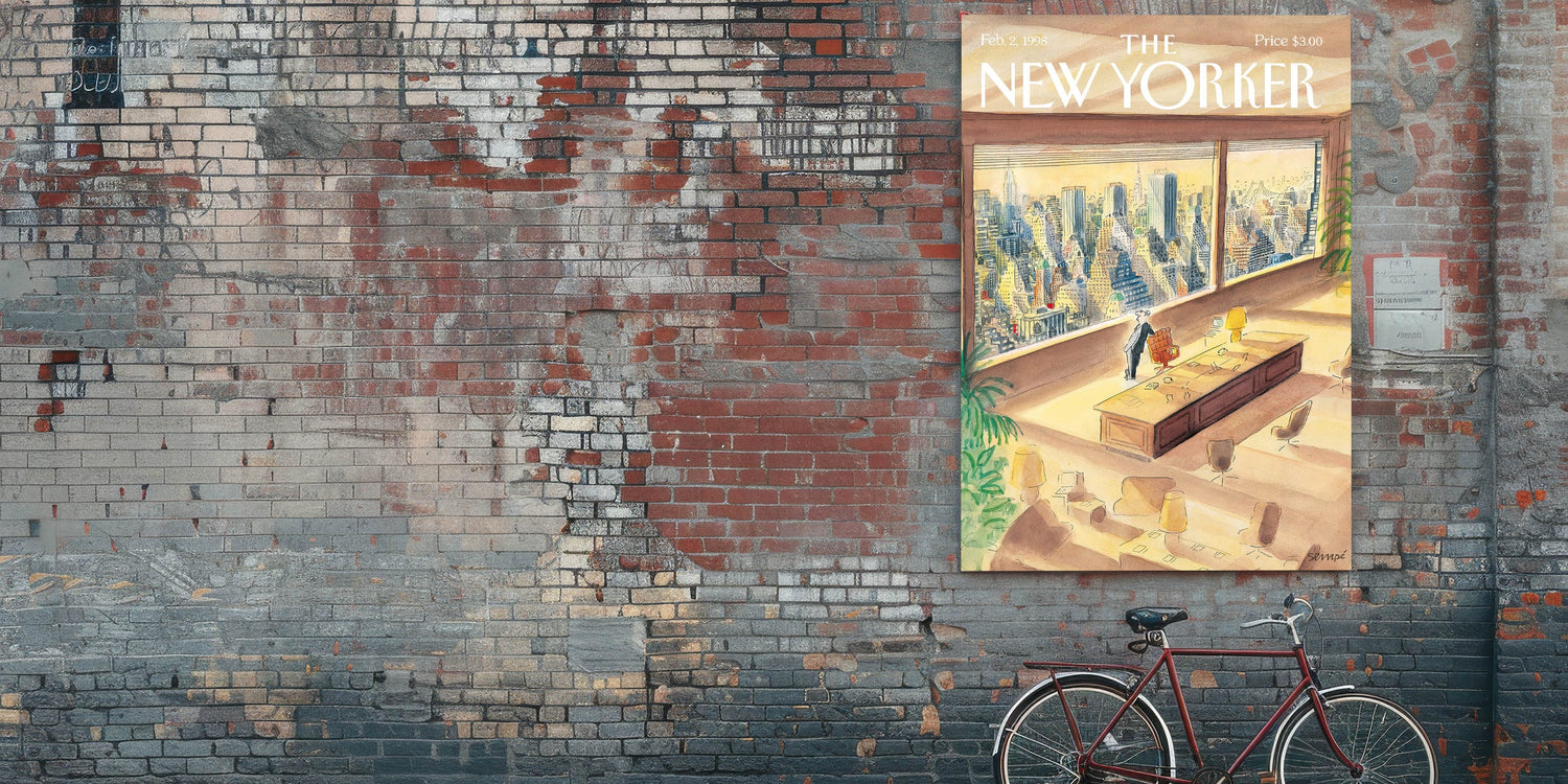 This New Yorker cover reproduction brings the energy of New York's skyline into your living room, office, or workspace. Whether you're a fan of iconic New Yorker wall art or enjoy thoughtful, detailed illustrations, this piece will enhance any environment.