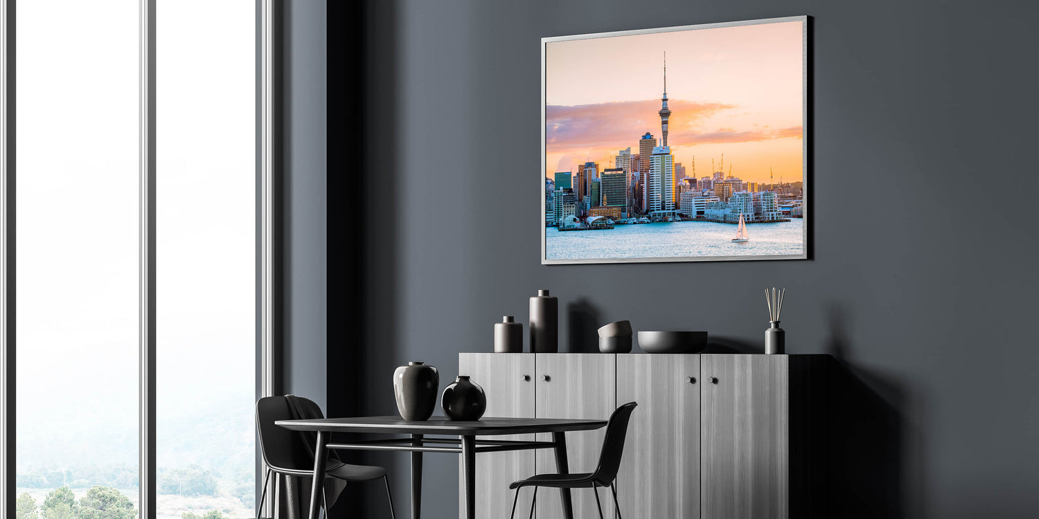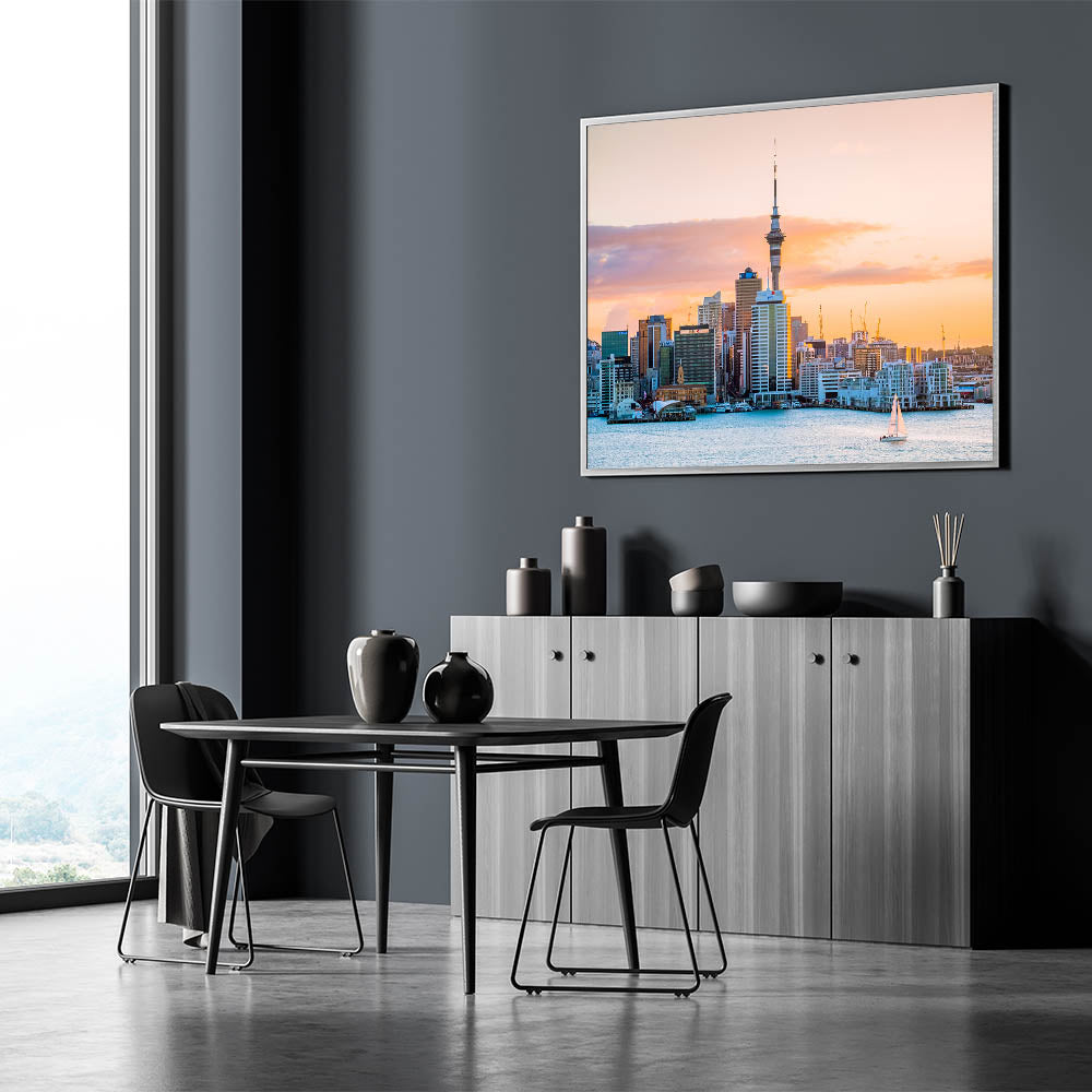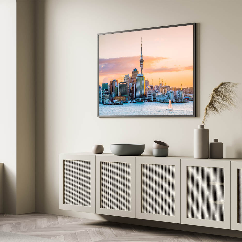 - Stunning Sunset View: The art captures the serene moment of sunset over Auckland, enhancing any wall with its warm colors.