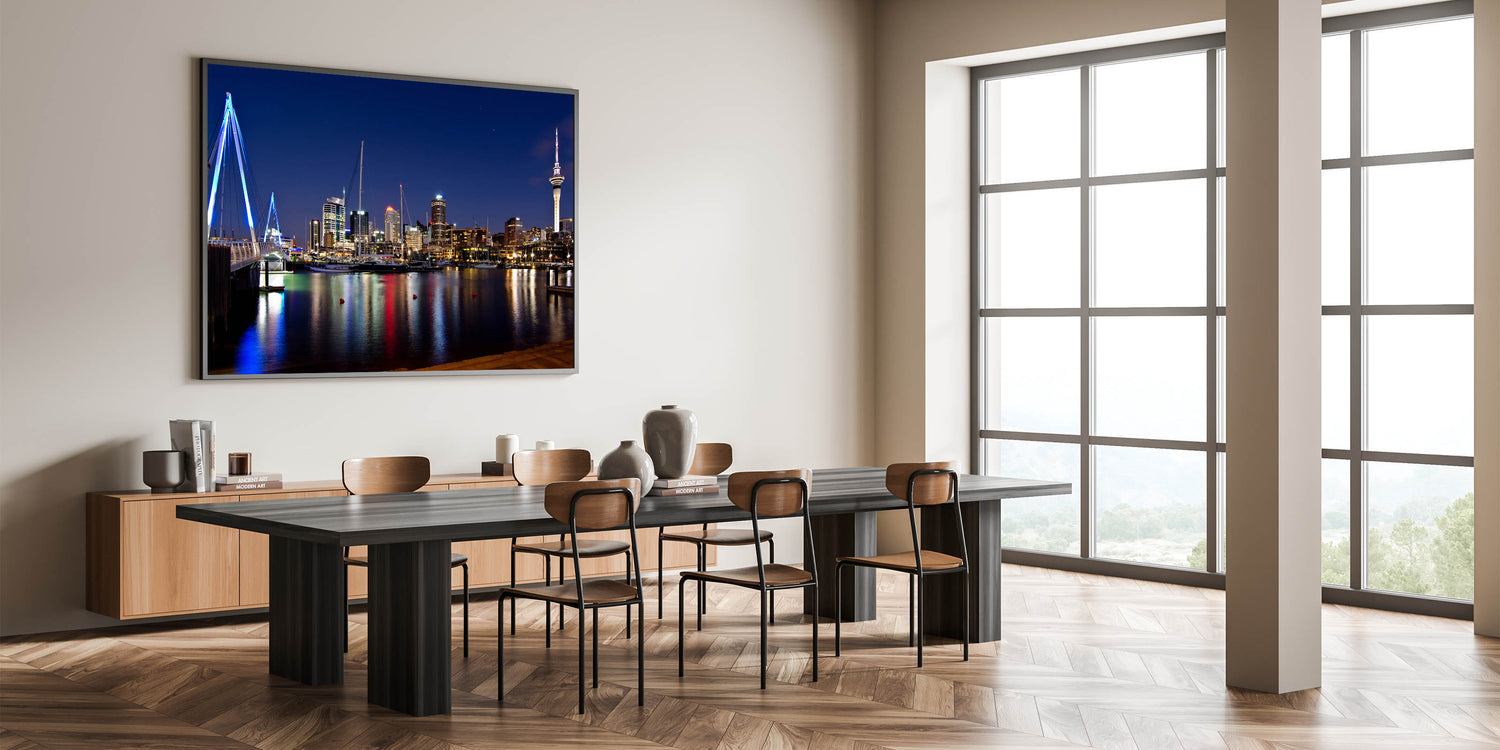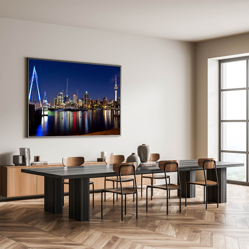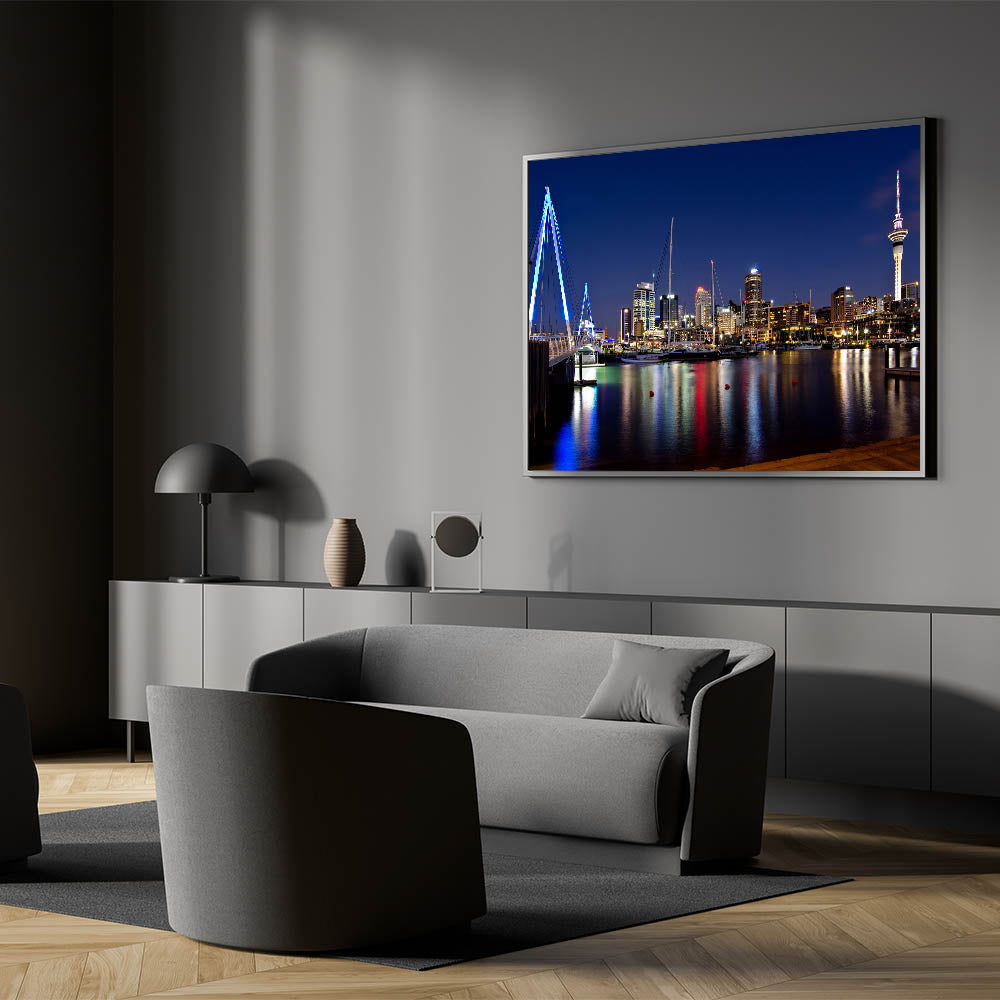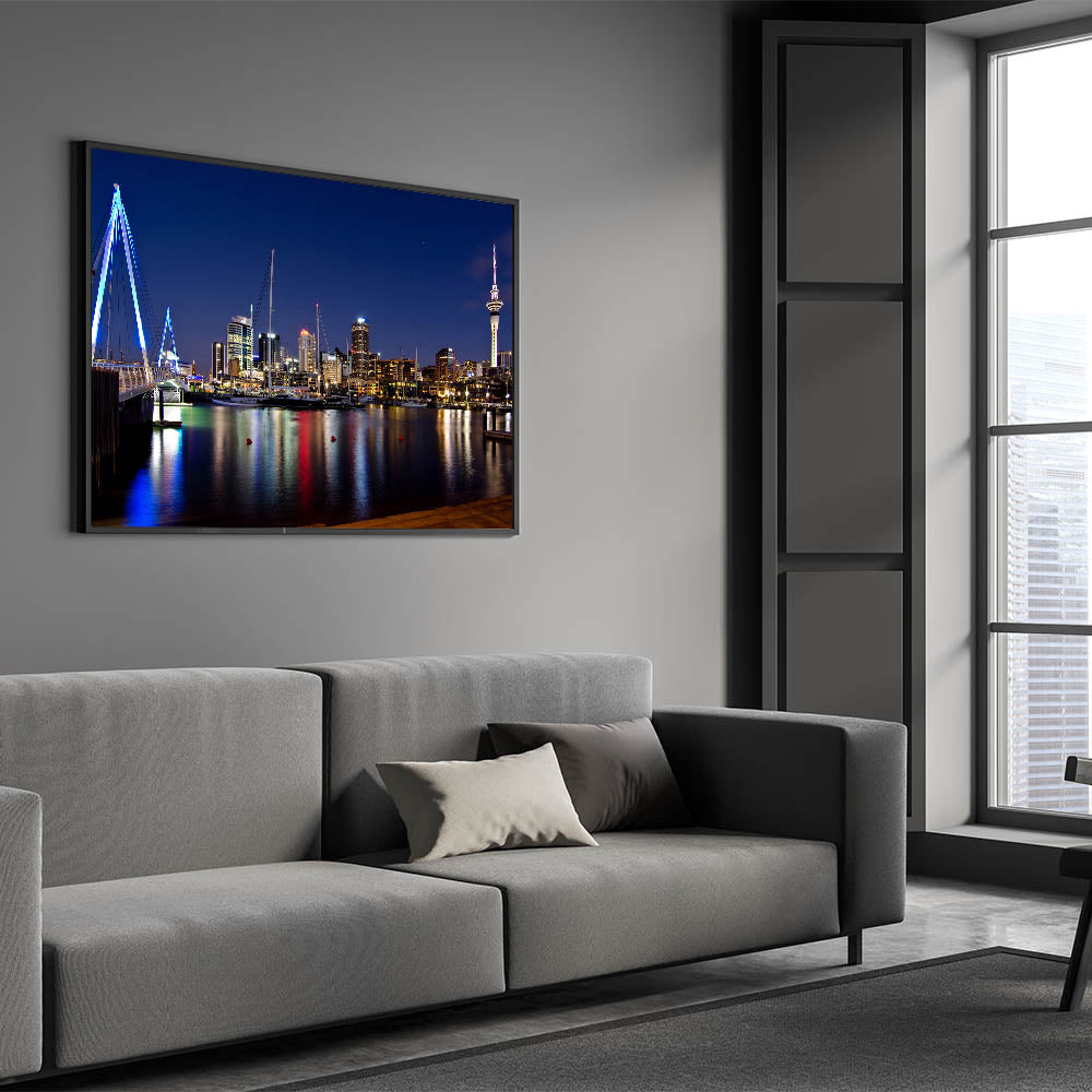 Bring the essence of Auckland's nightlife into your space with this captivating canvas print, perfect for those who appreciate urban elegance and waterfront charm.