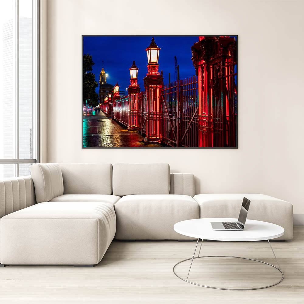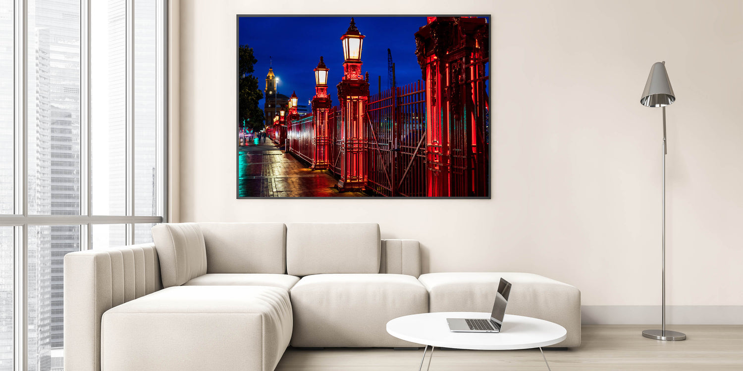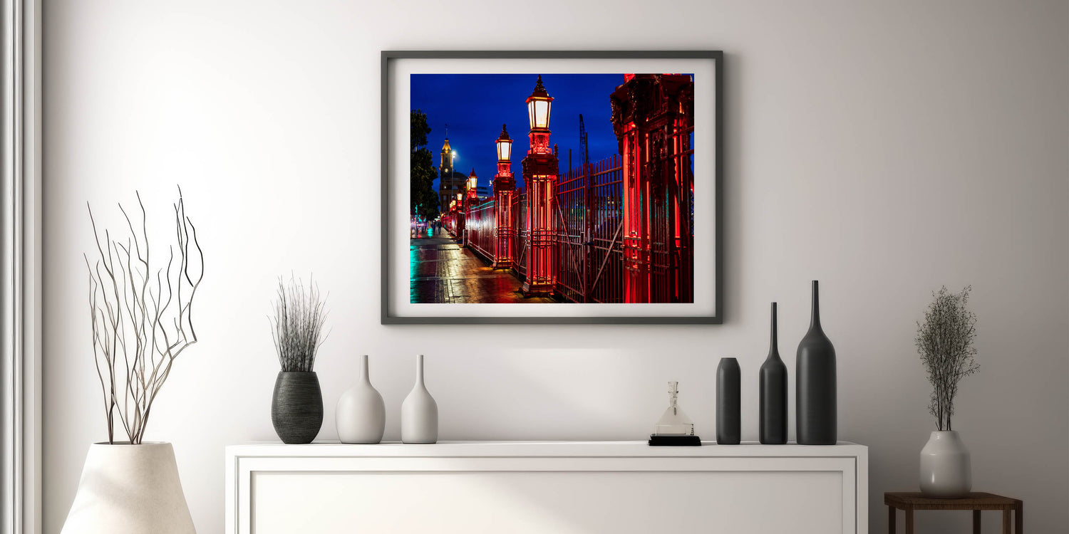 Illuminate your décor with our "Auckland Night Lights" canvas, a captivating portrayal of Auckland’s vibrant nightlife through the lens of its beautifully lit red lanterns along a serene walkway. This piece of scenic cityscape art captures the enchanting atmosphere of a quiet evening stroll beside the water, reflecting the urban charm of New Zealand's bustling city.