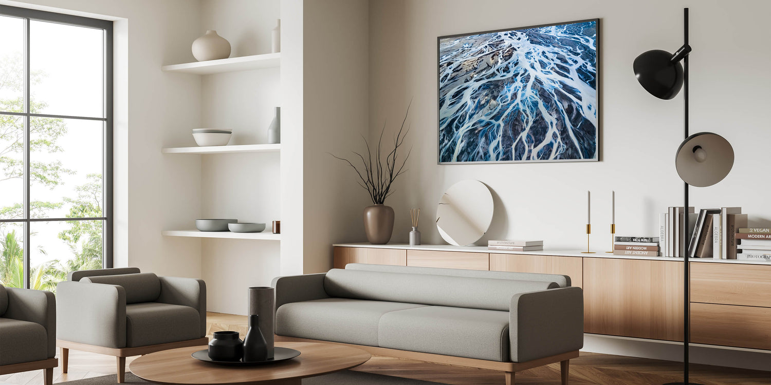 - Premium Canterbury Wall Art featuring an aerial view of braided river networks in New Zealand