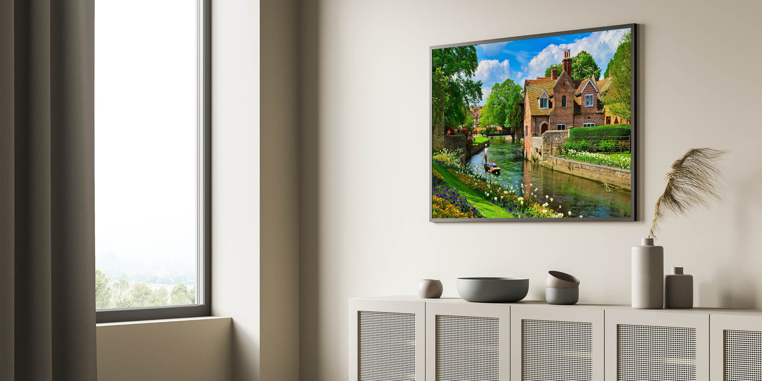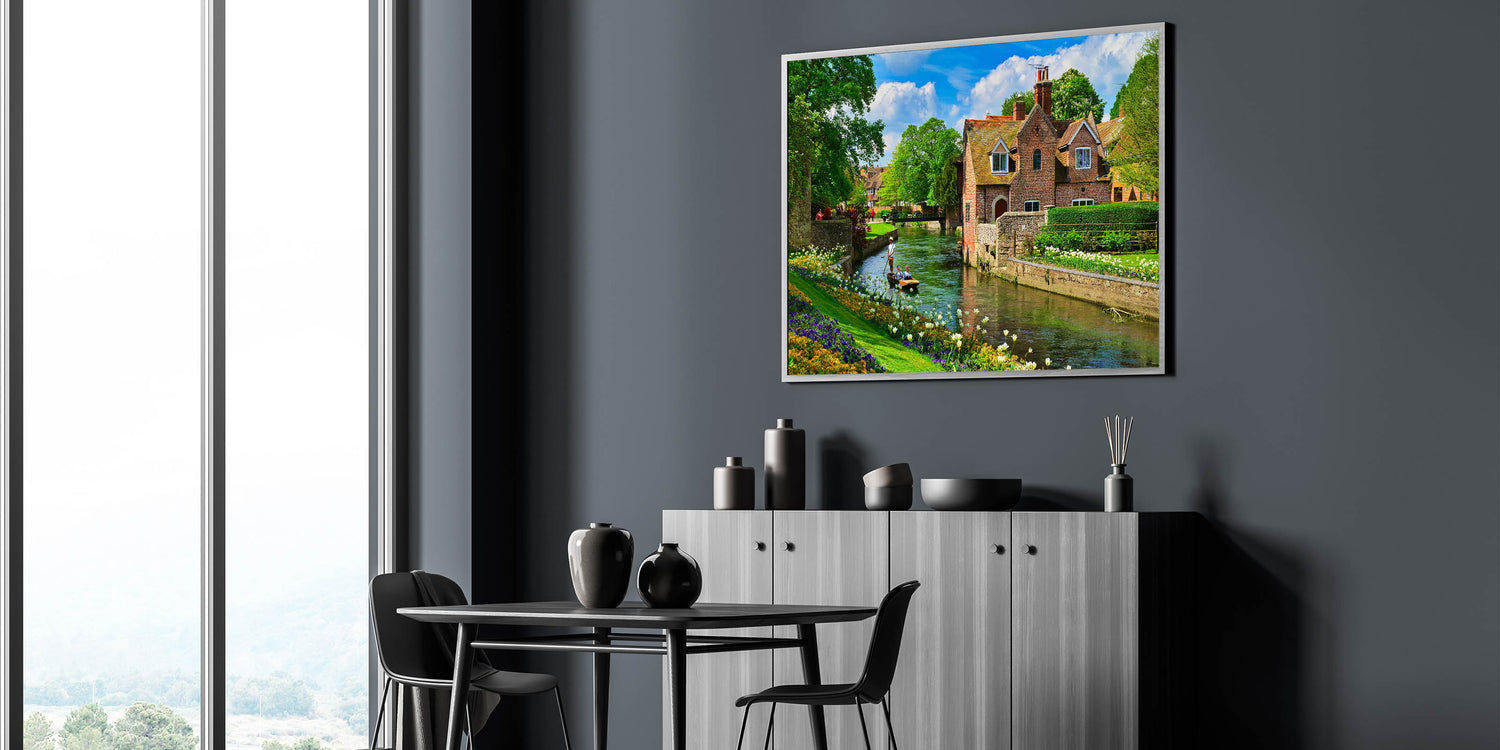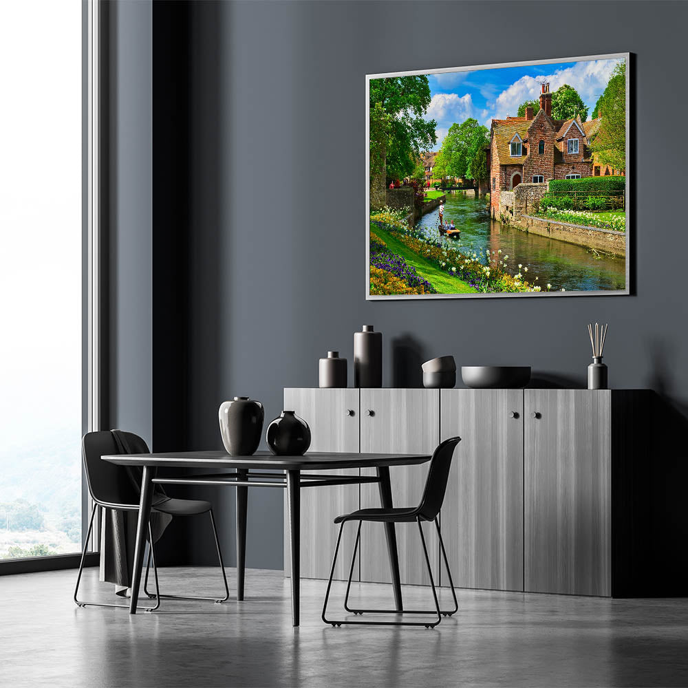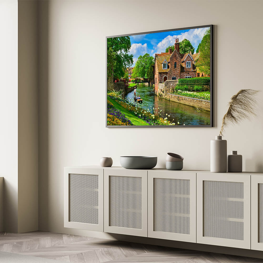 Transport yourself to the tranquil beauty of Canterbury’s scenic villages with this charming Canterbury Wall Art. Featuring a peaceful riverside scene with lush greenery, vibrant flowers, and classic brick cottages, this artwork encapsulates the essence of the idyllic New Zealand countryside. Our New Zealand Scenery Prints highlight the serenity and beauty of village life, making it the perfect piece to add a touch of calm and nature to your home.