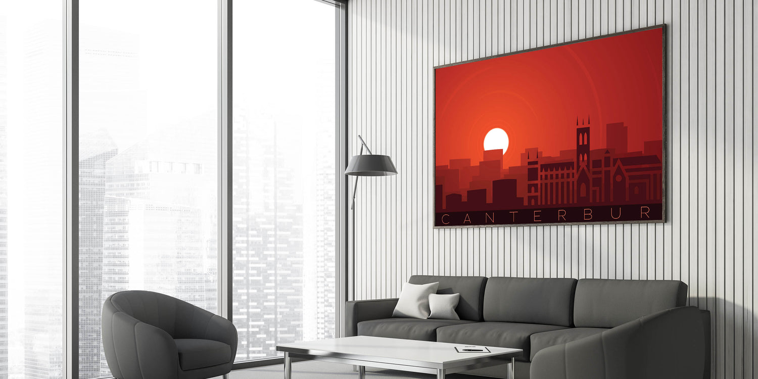 • Striking Canterbury Wall Art showcasing a bold city sunset