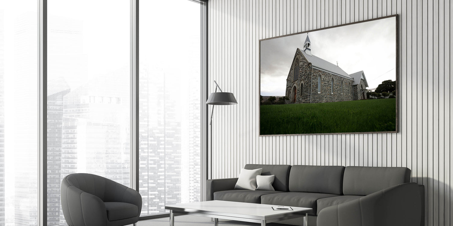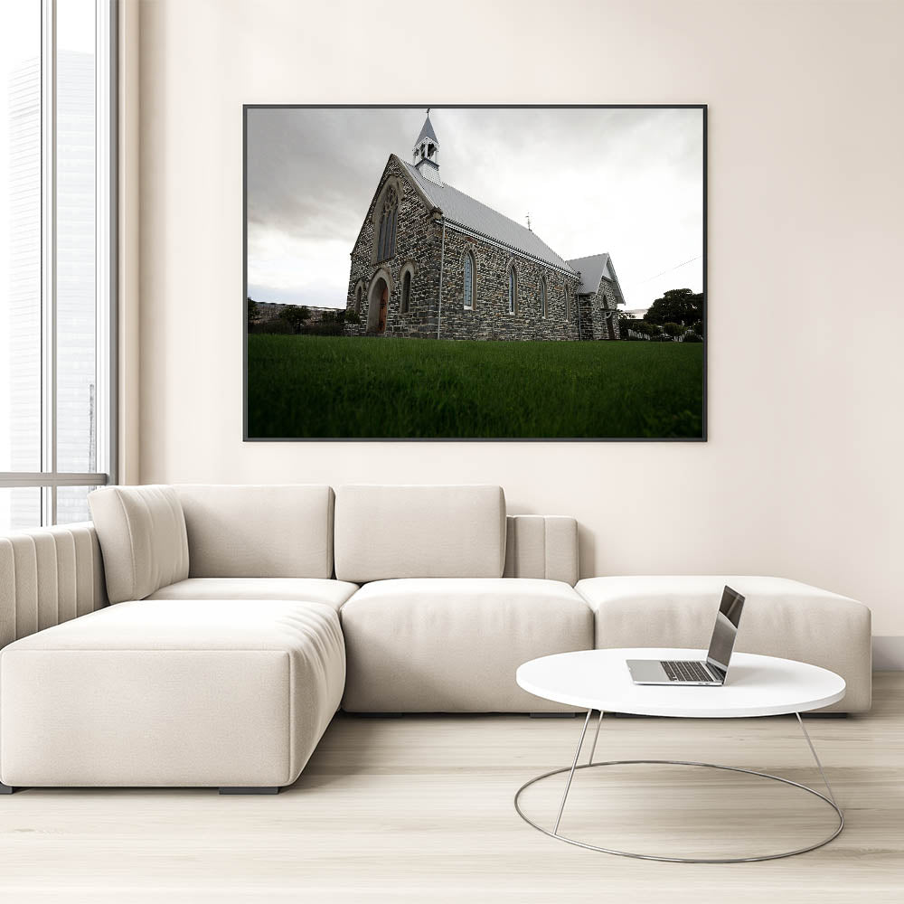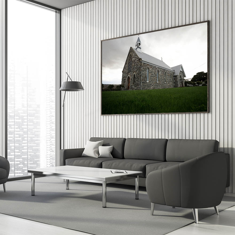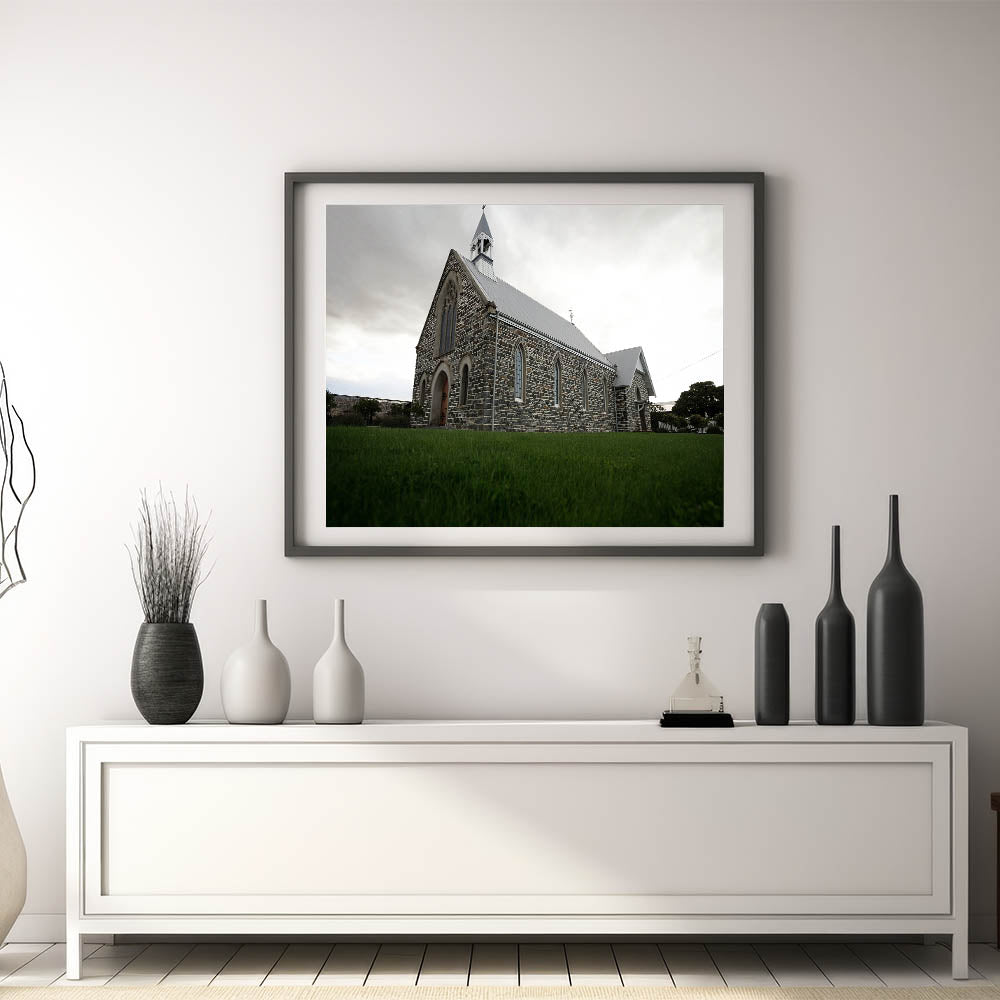 Add a piece of New Zealand's architectural heritage to your home with this stunning stone church artwork. Whether as a framed print or rolled canvas, this piece will bring a sense of history and tranquility to any room.
