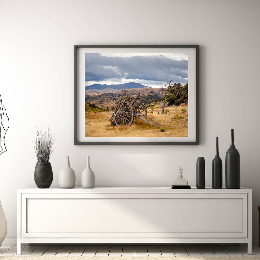 Otago Wall Art – Central Otago Landscape with Rustic Cart New Zealand Scenery