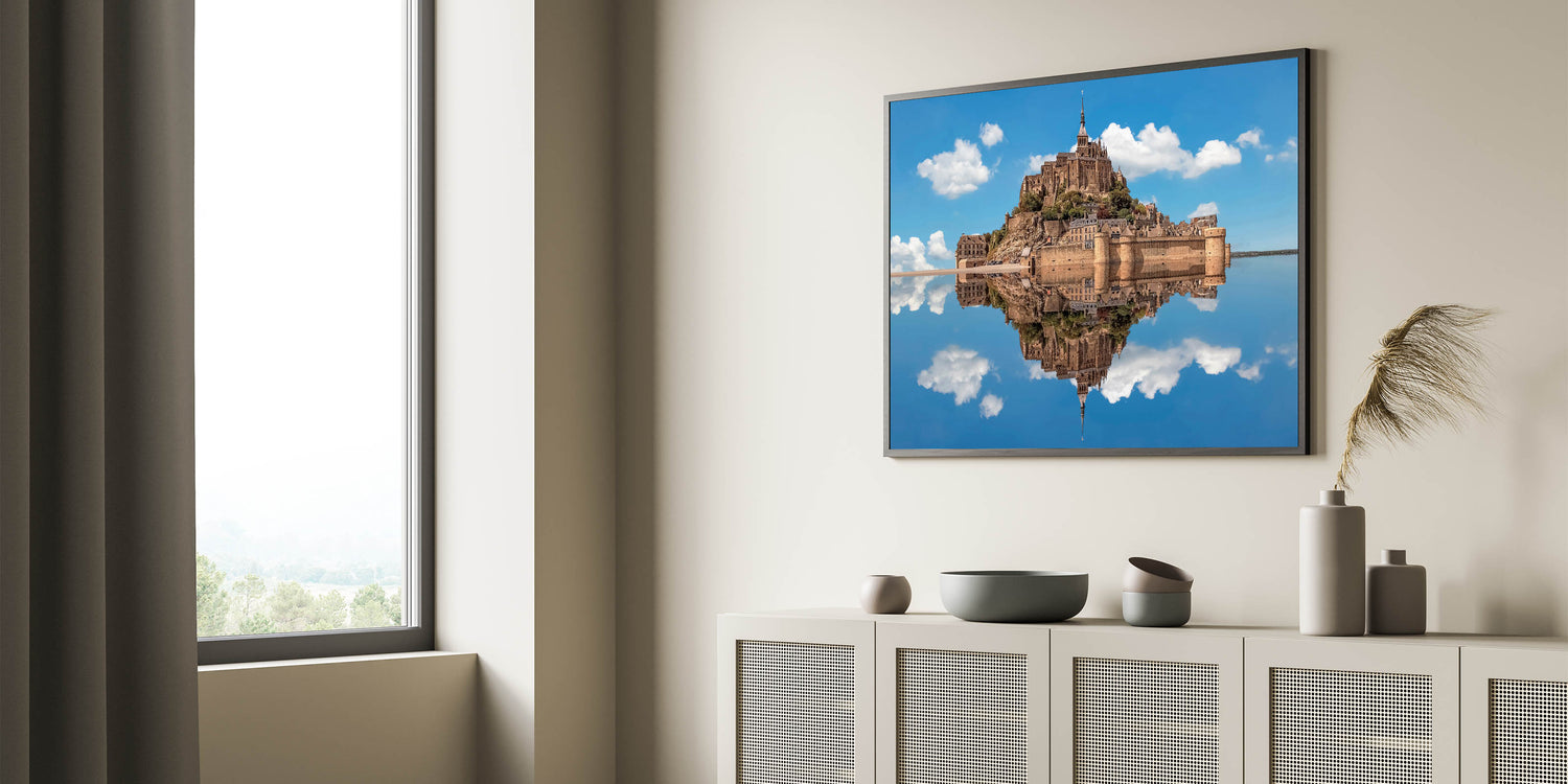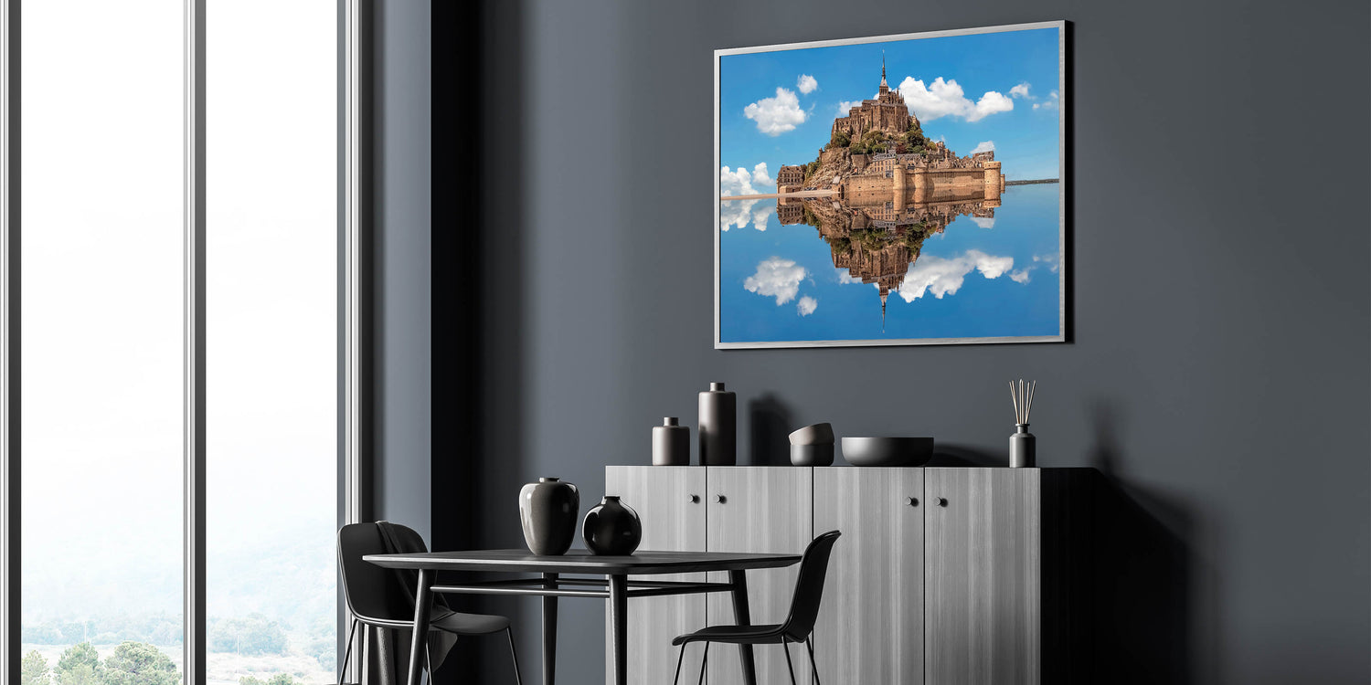 - Beautiful Normandy landscape prints featuring the magnificent Mont Saint-Michel, available as stretched canvas, framed prints, or acrylic glass.