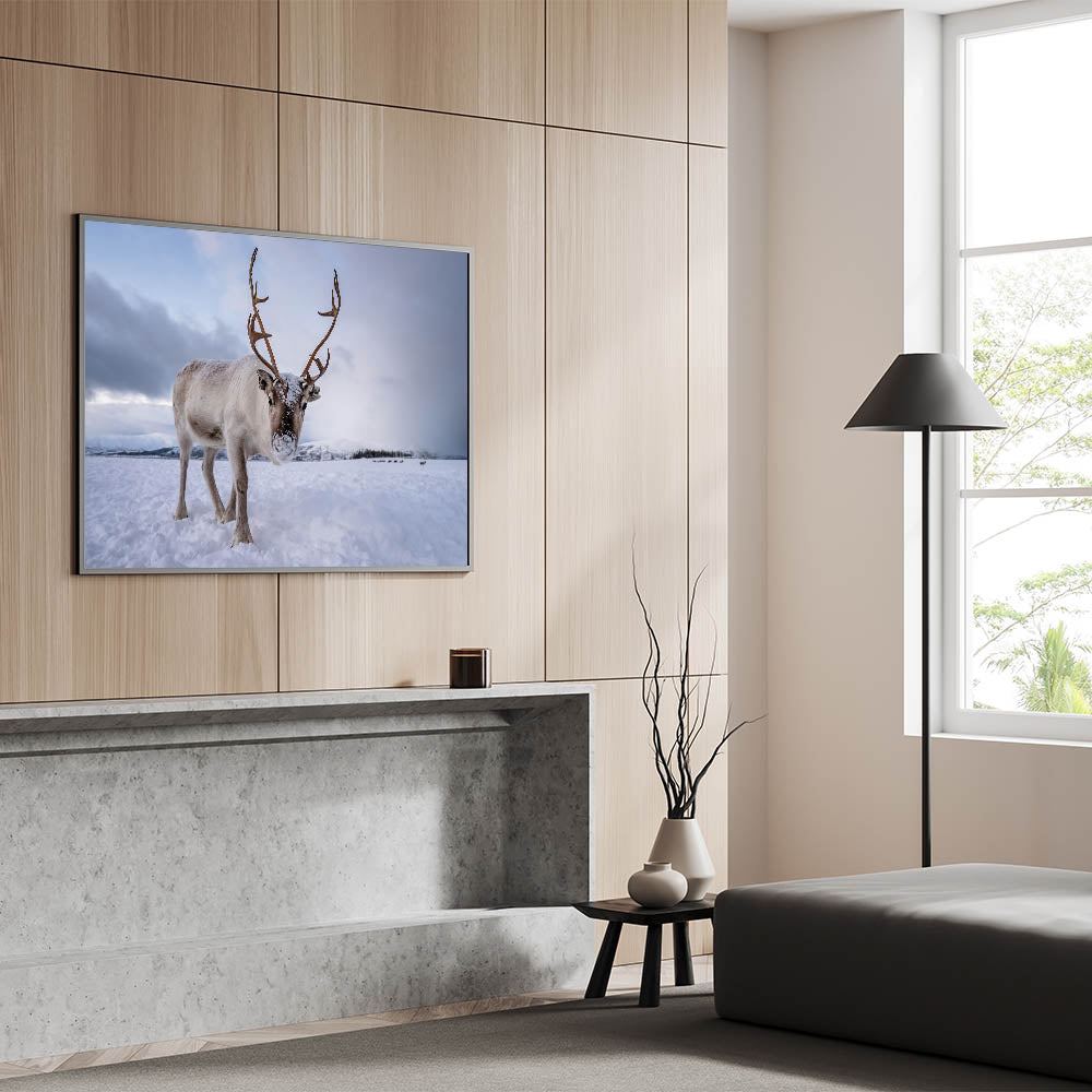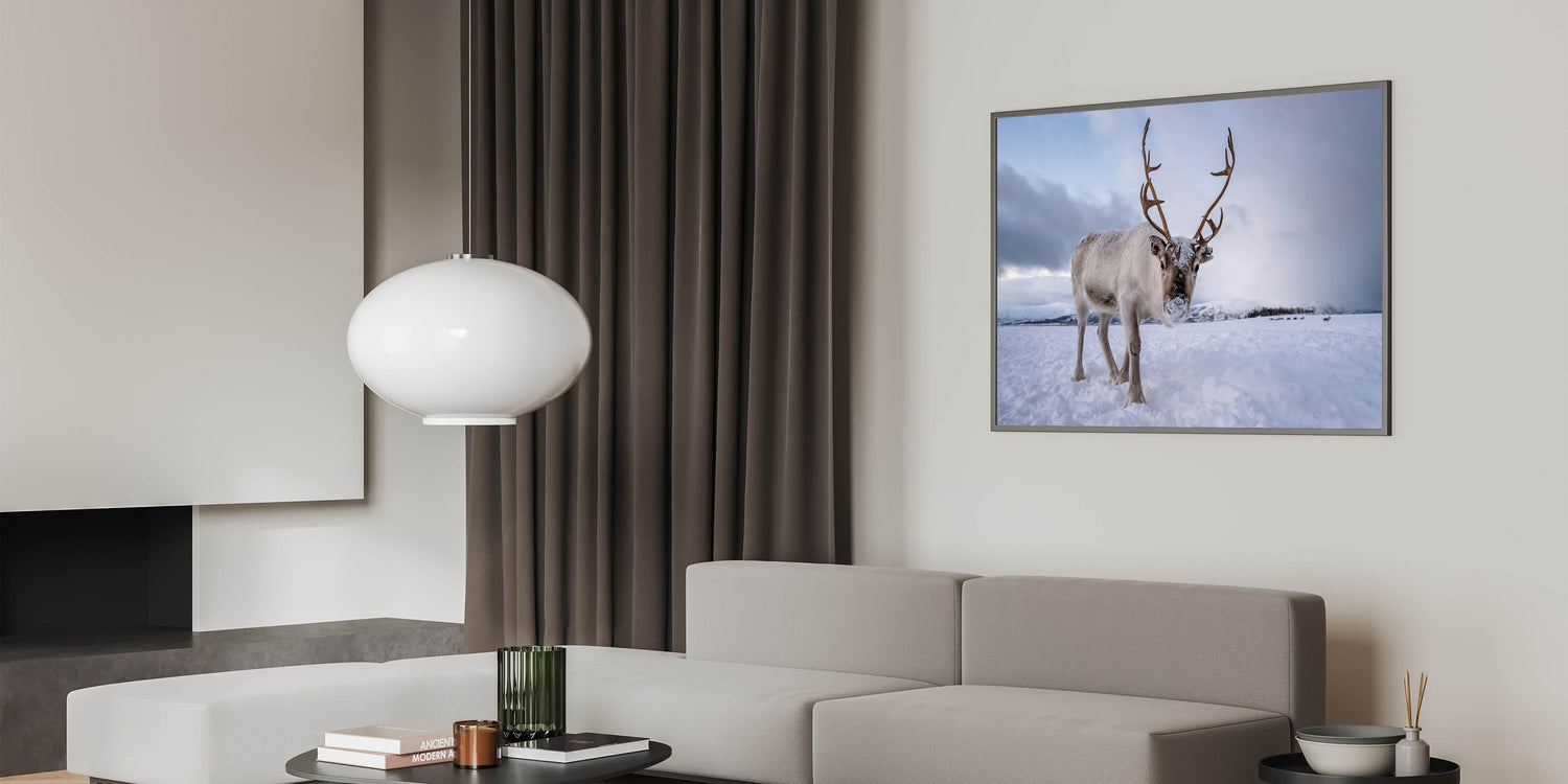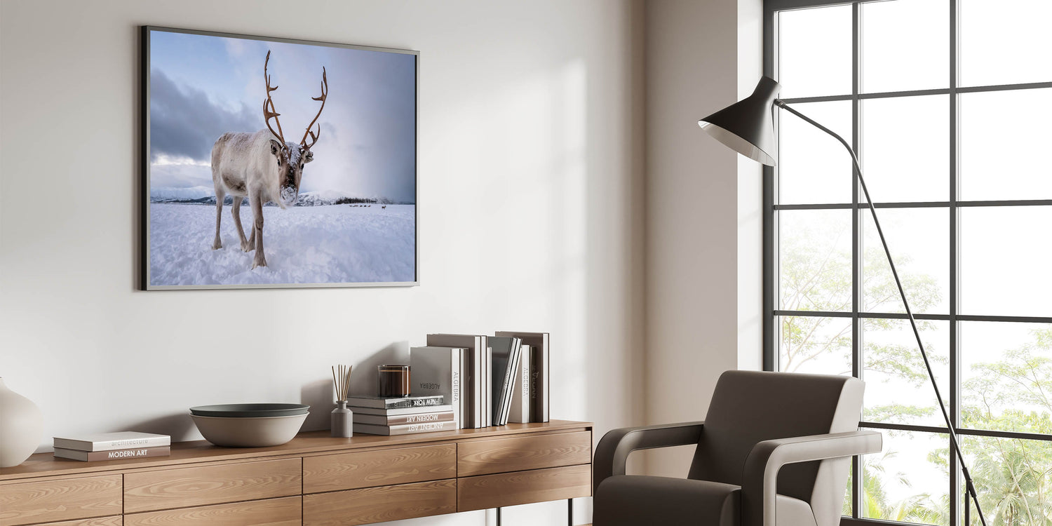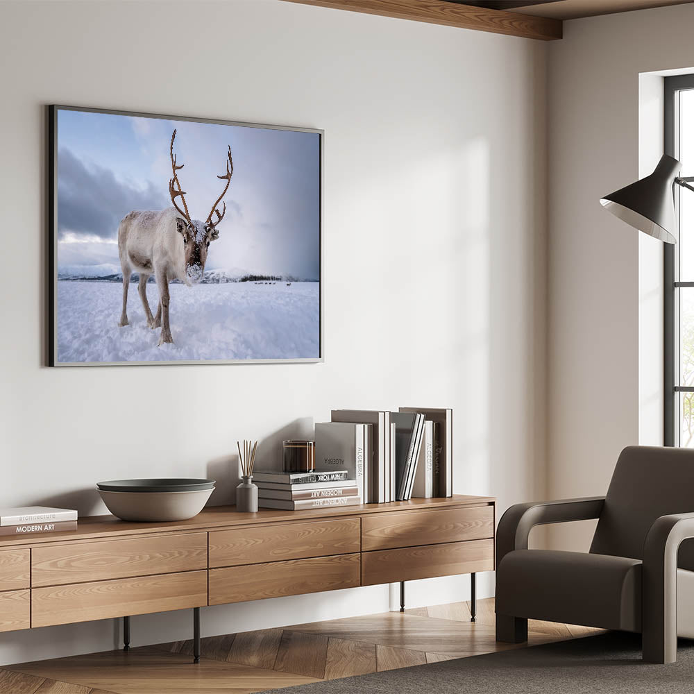 This piece of decorative Norway photography is a timeless representation of Norway’s natural beauty. Whether you're looking to create a rustic or Nordic-themed space, this stunning reindeer artwork will add warmth and a touch of wildlife wonder to your decor.