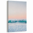Experience the serenity of the sea with this mesmerizing beach decor print. Featuring rolling turquoise waves beneath a soft pastel sunset, this artwork captures the beauty and power of the ocean. The blend of vibrant blue tones and warm pink hues makes it perfect for adding a touch of seasonal home decor to your space.
