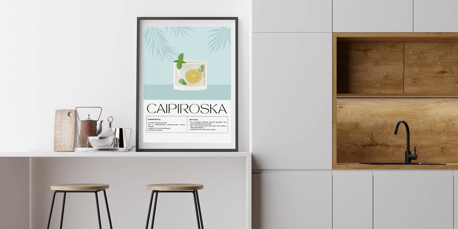 Caipiroska Cocktail Recipe Wall Art - Modern Bar and Kitchen Decor
