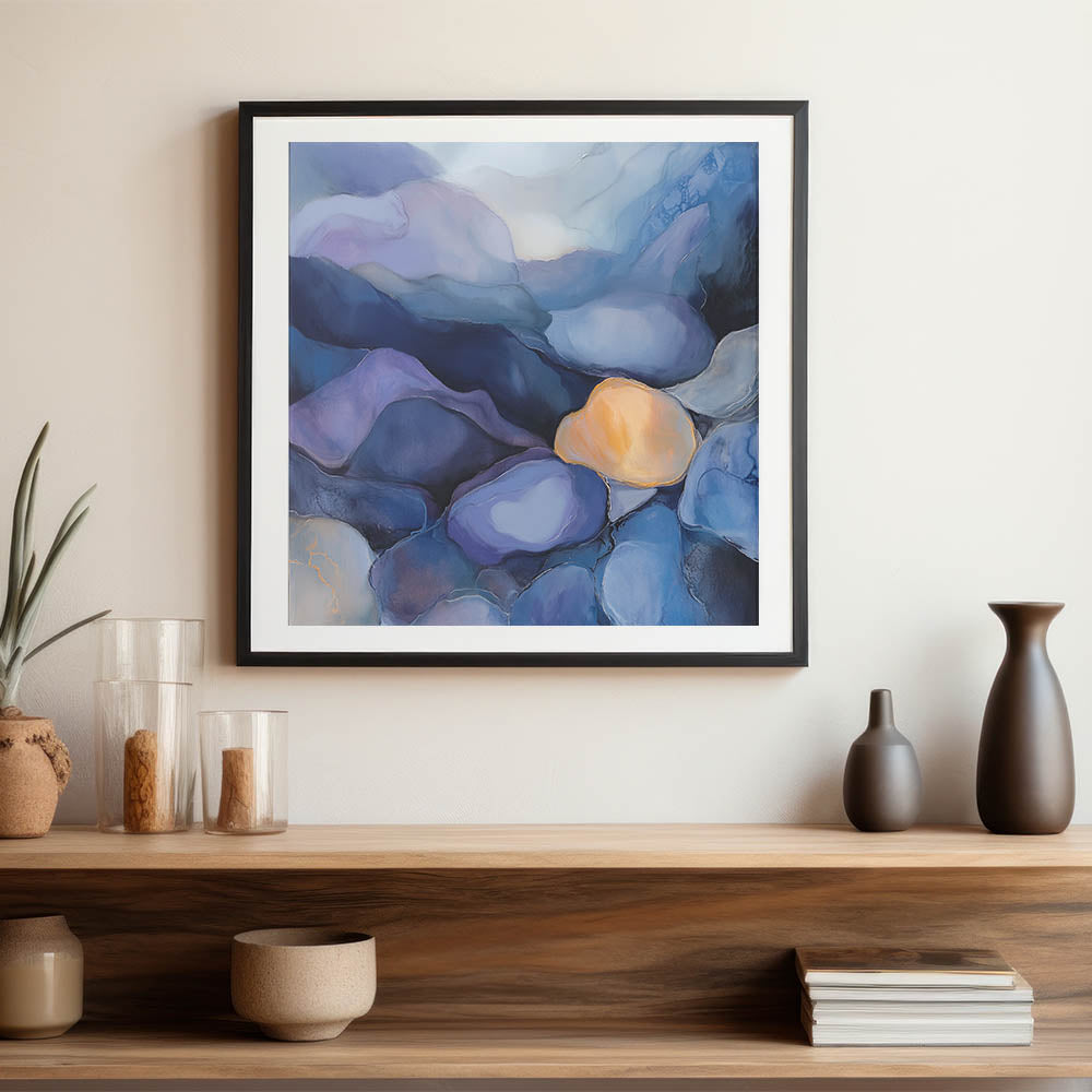 Colorful Abstract Wall Art – Dreamy Stones in Blue and Gold