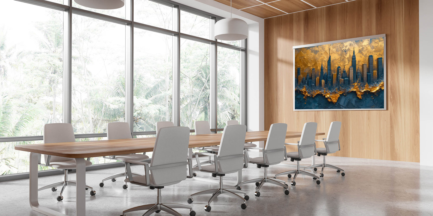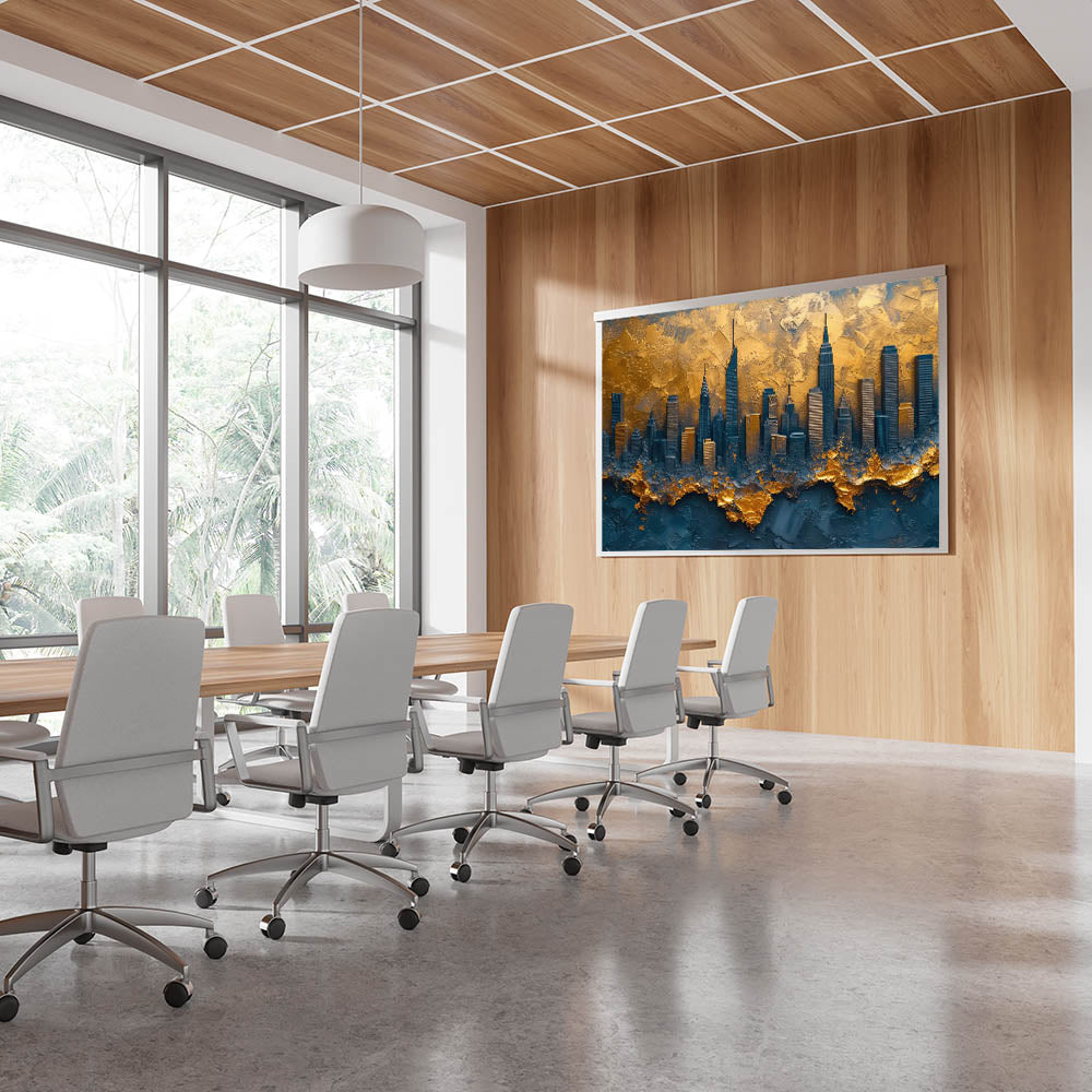 Luxury Skyline Office Wall Art – Gold & Navy Corporate Decor