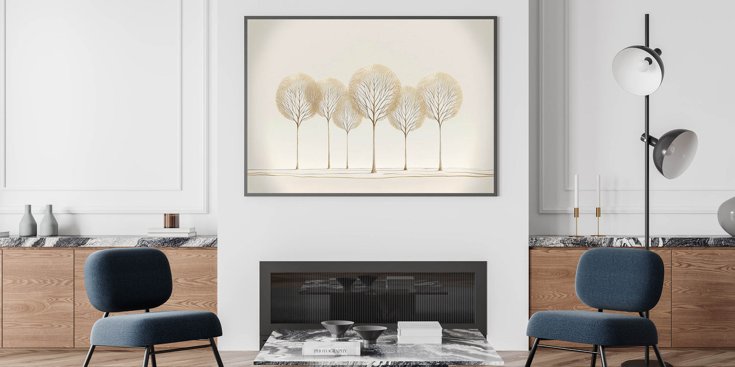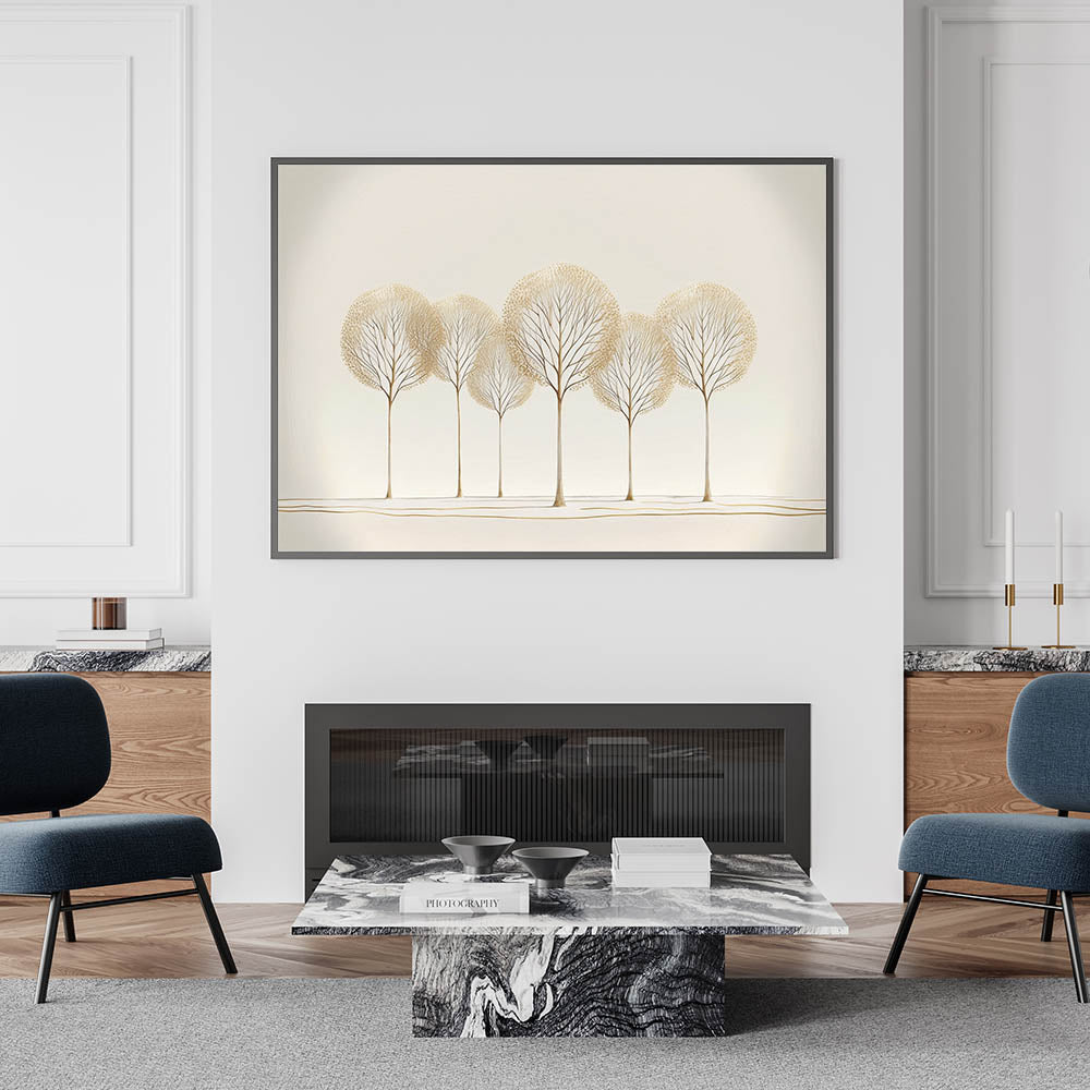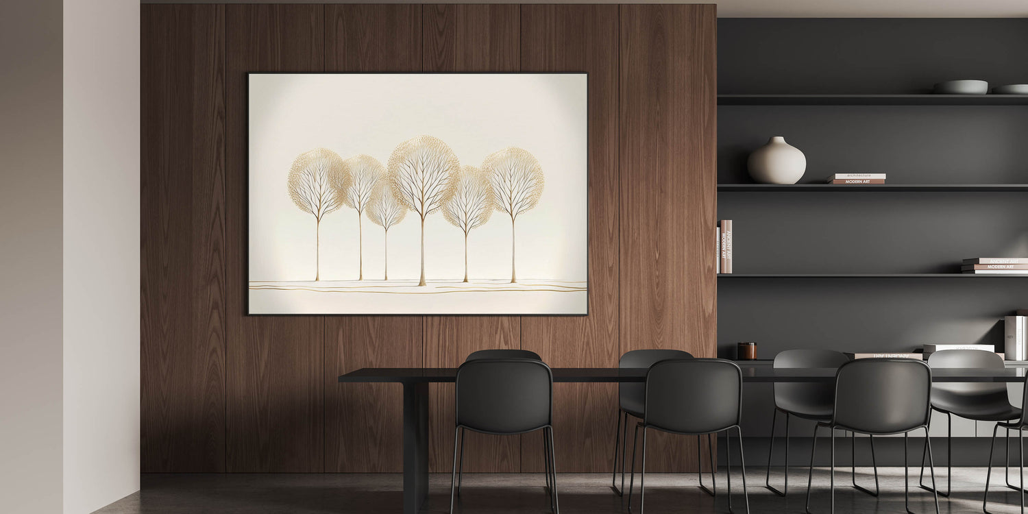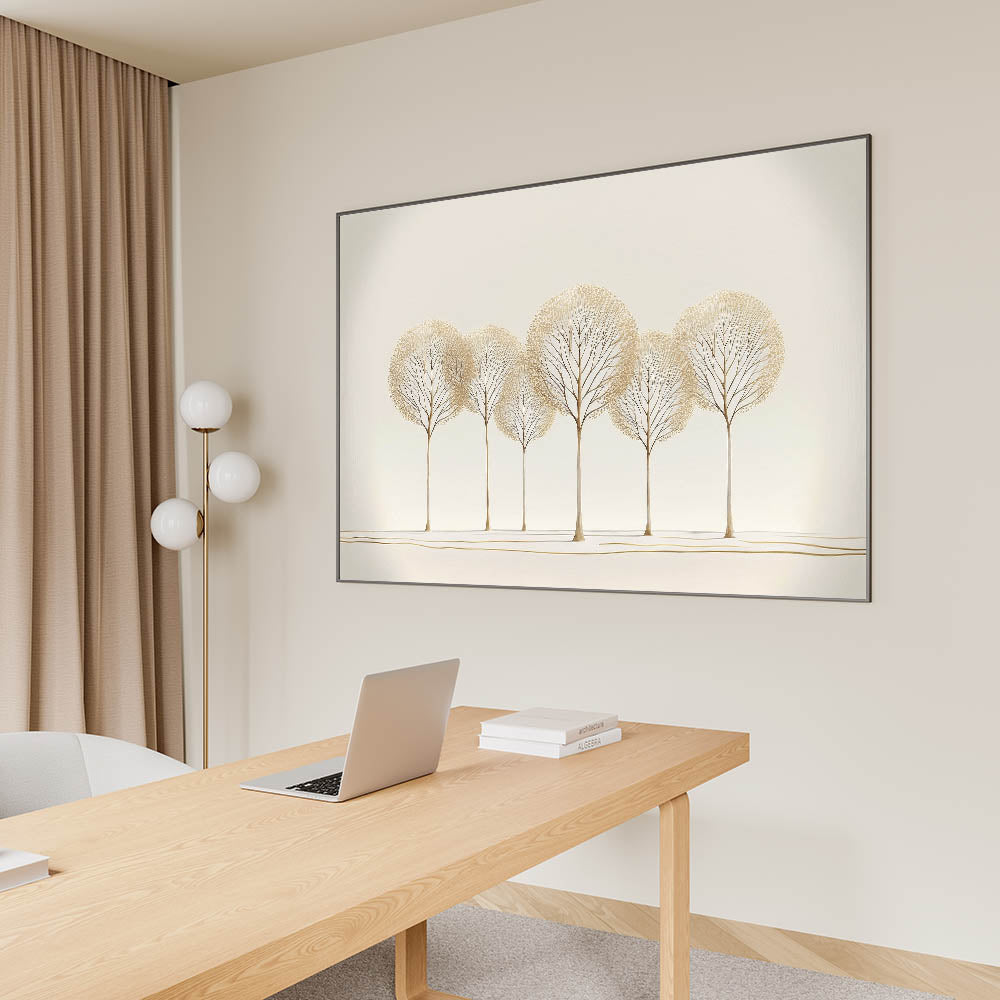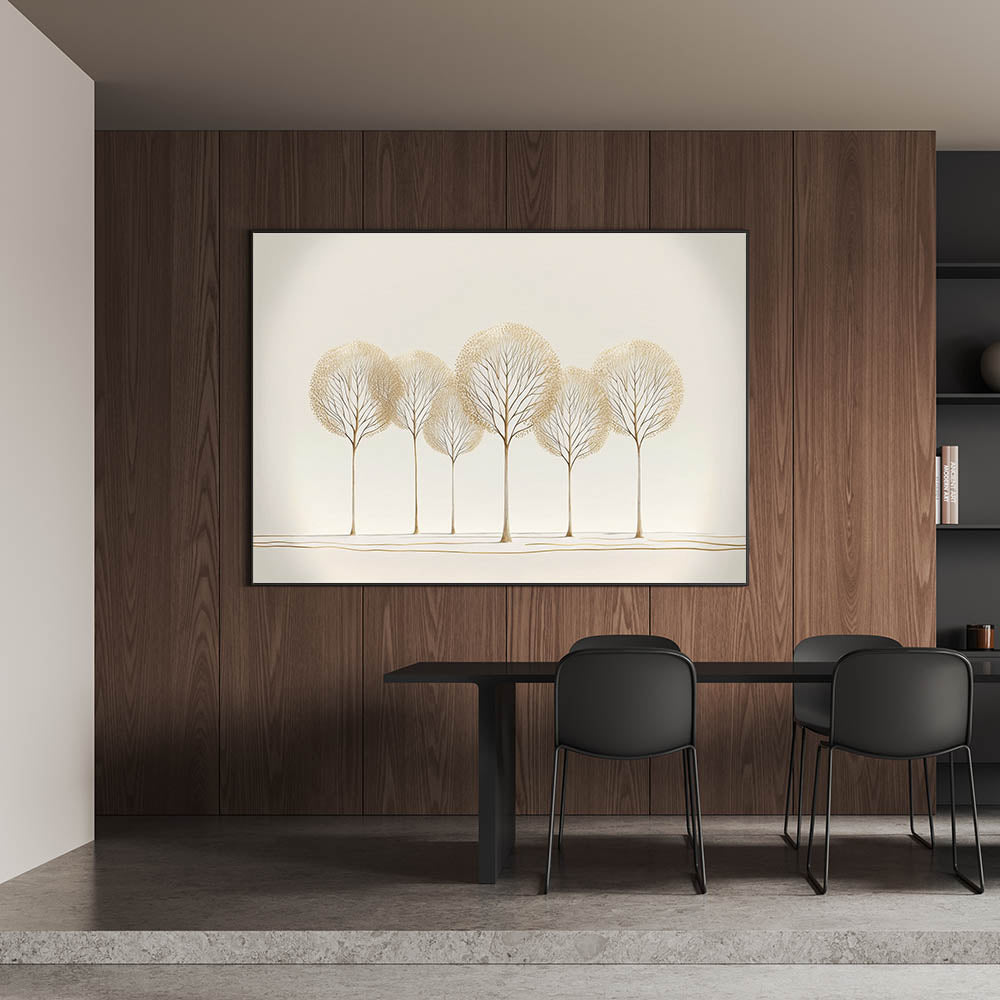 - Elegant Minimalist Design: The finely detailed golden tree silhouettes create a sophisticated office interior art statement.