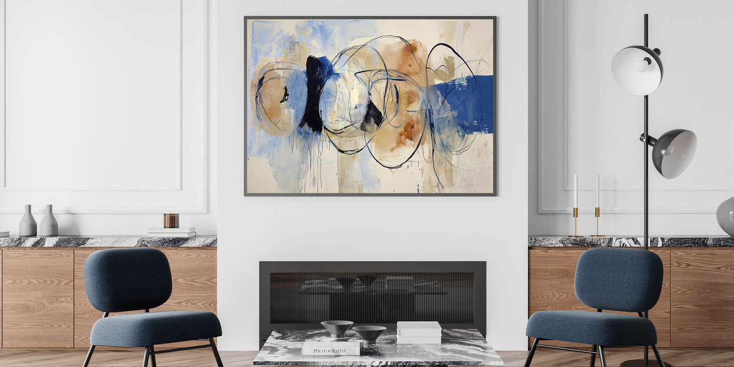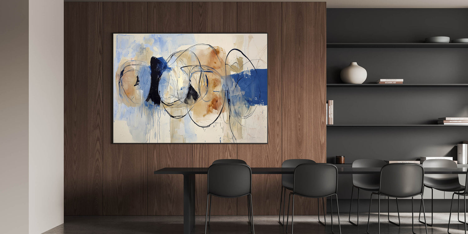 Modern Office Wall Art - Blue & Beige Abstract Corporate Decor
