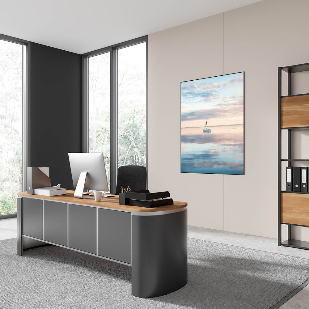 Upgrade your workspace art pieces with this office canvas art, blending modern elegance with a tranquil maritime theme. Whether in a corporate lobby or a private office, this framed office wall art adds depth, style, and a calming atmosphere to your professional setting.