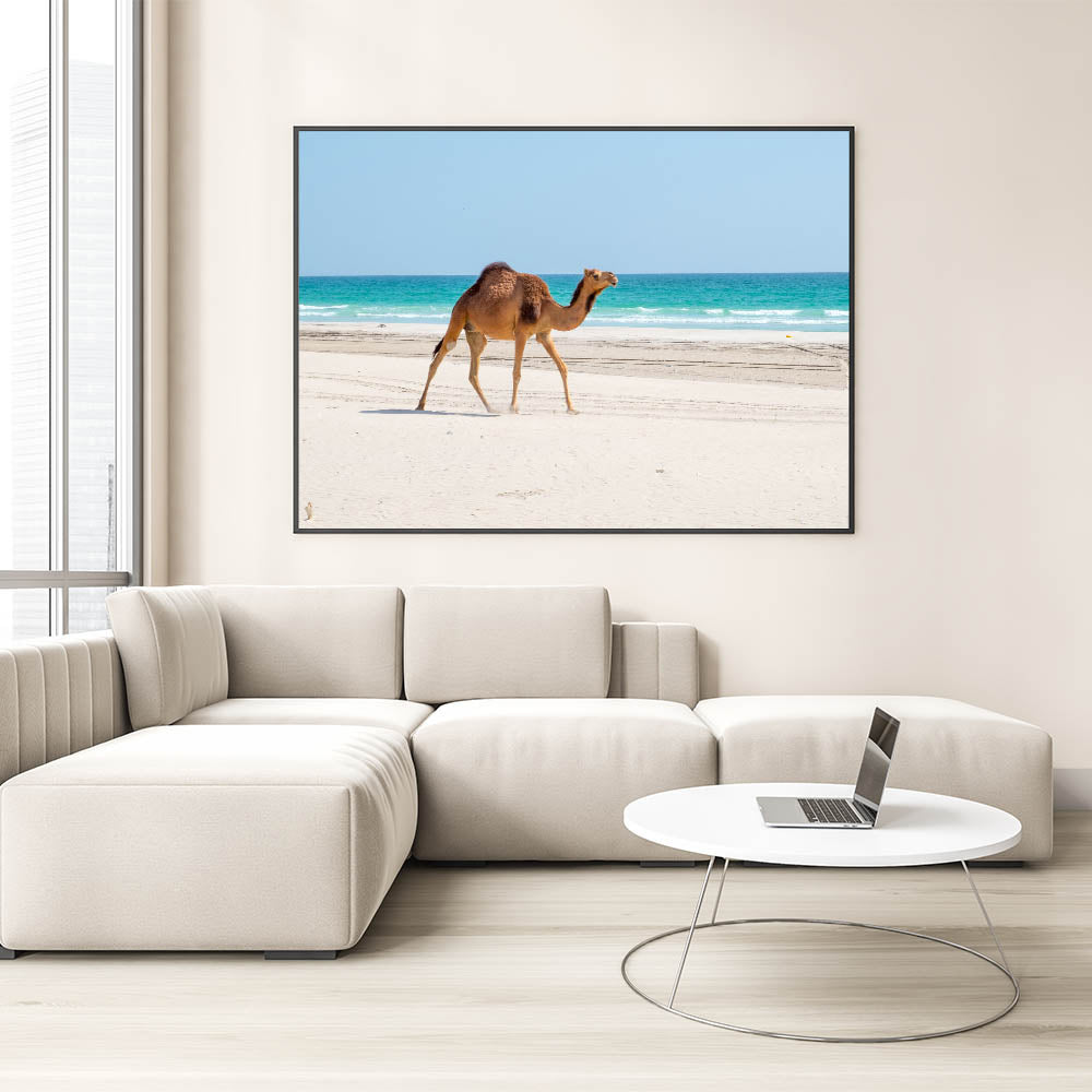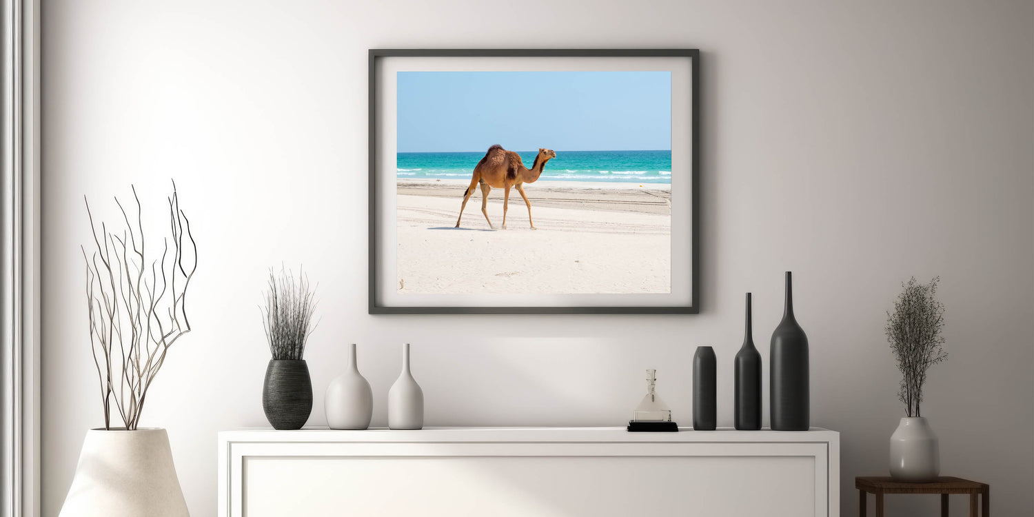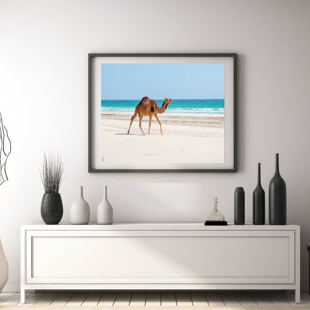 Camel on Omani Beach Wall Art – Scenic Arabian Peninsula Coastal Print