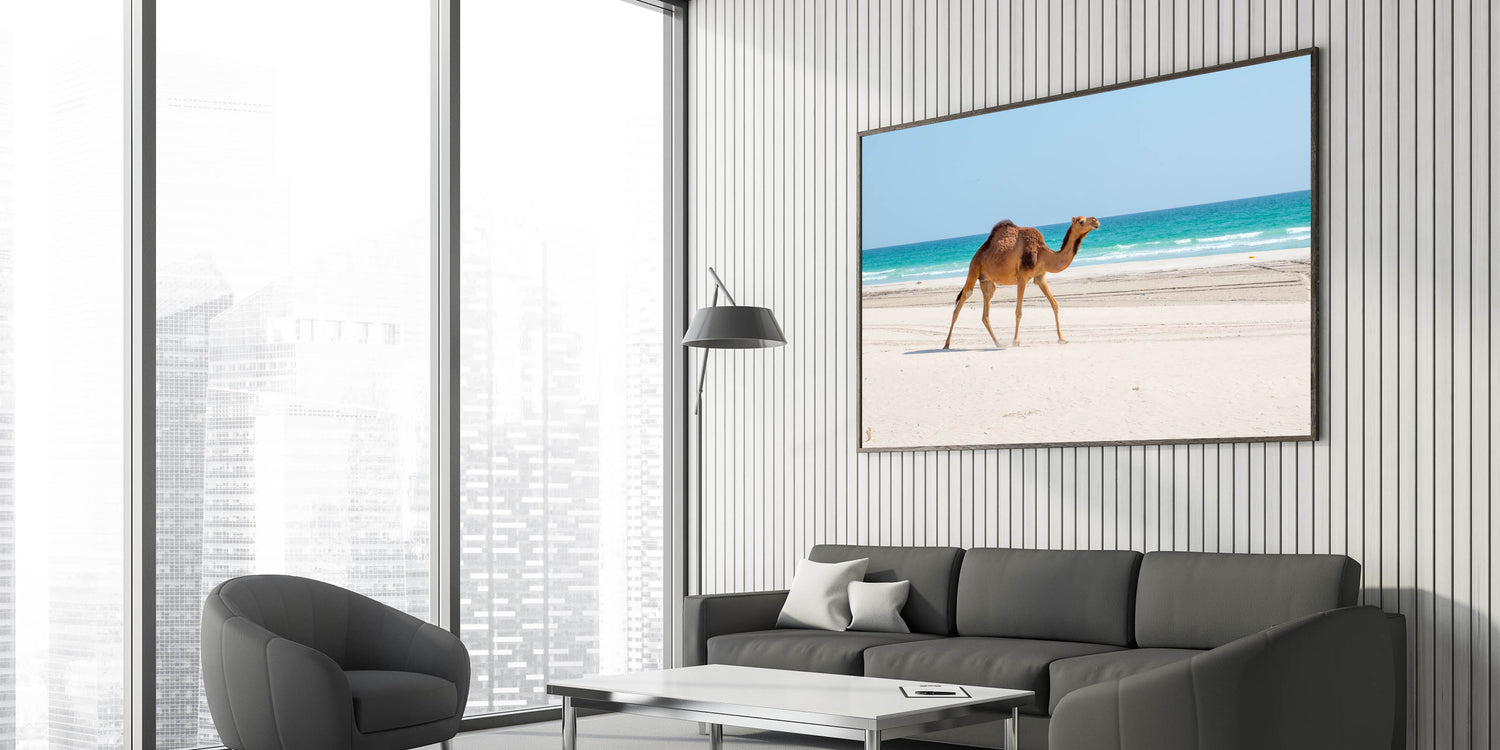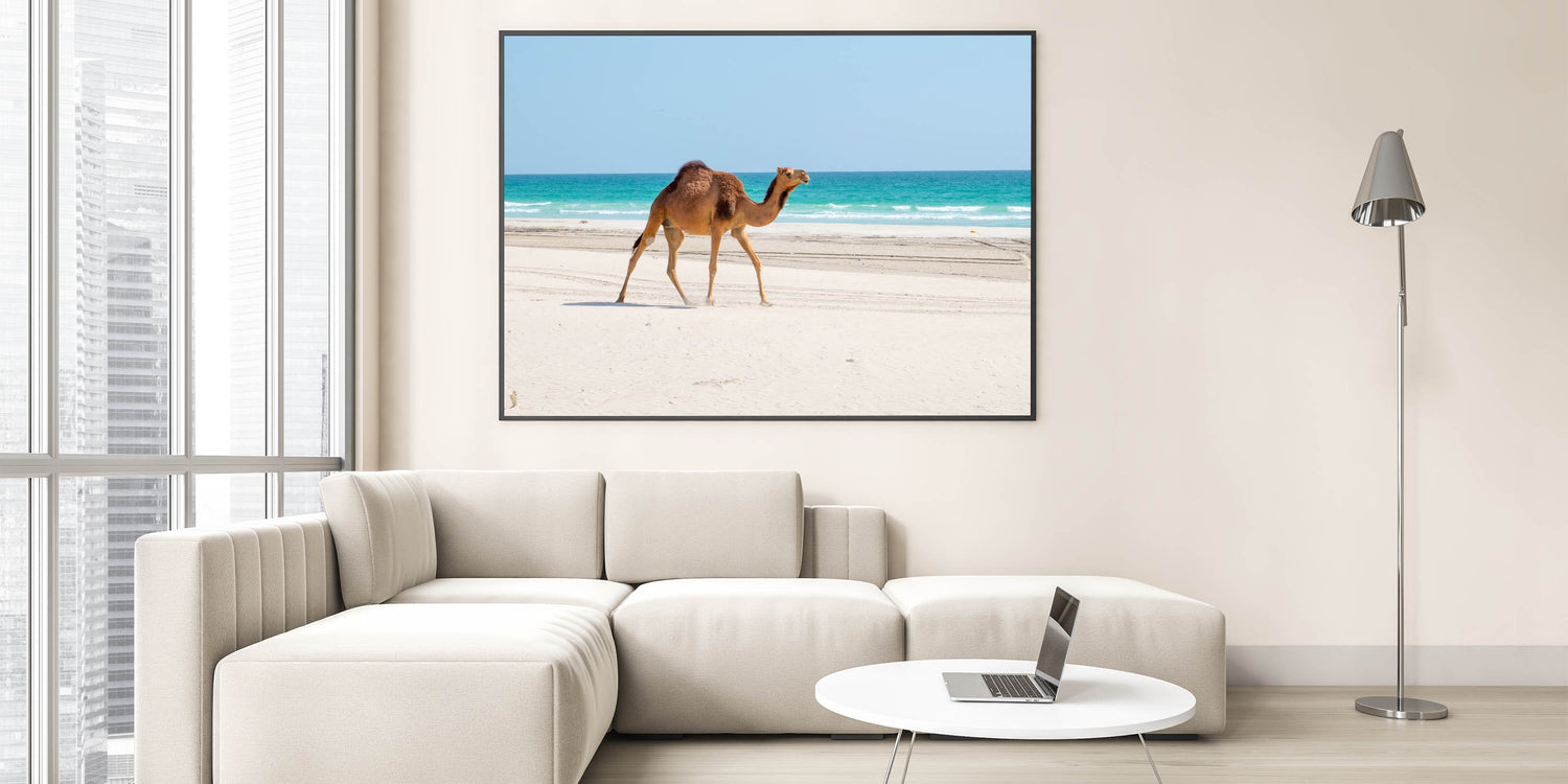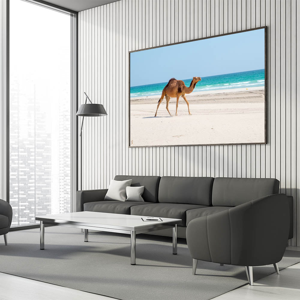 - Premium quality: High-resolution printing ensures the vibrant blues of the sea and the detailed texture of the camel and sand are captured beautifully.