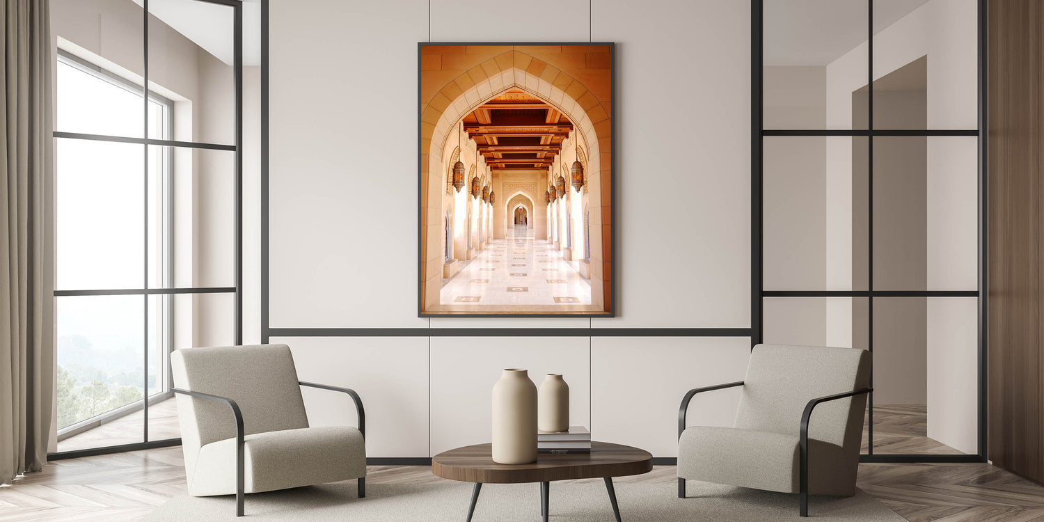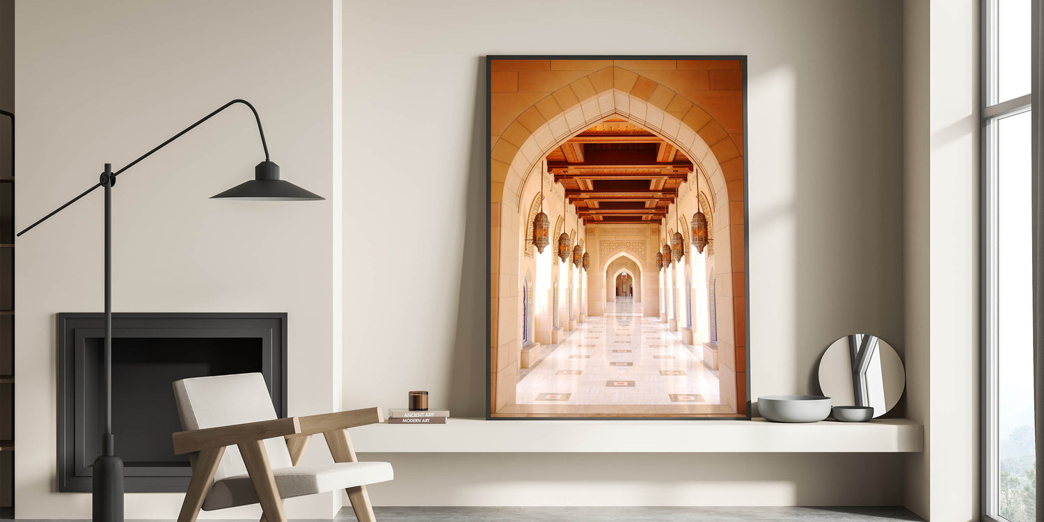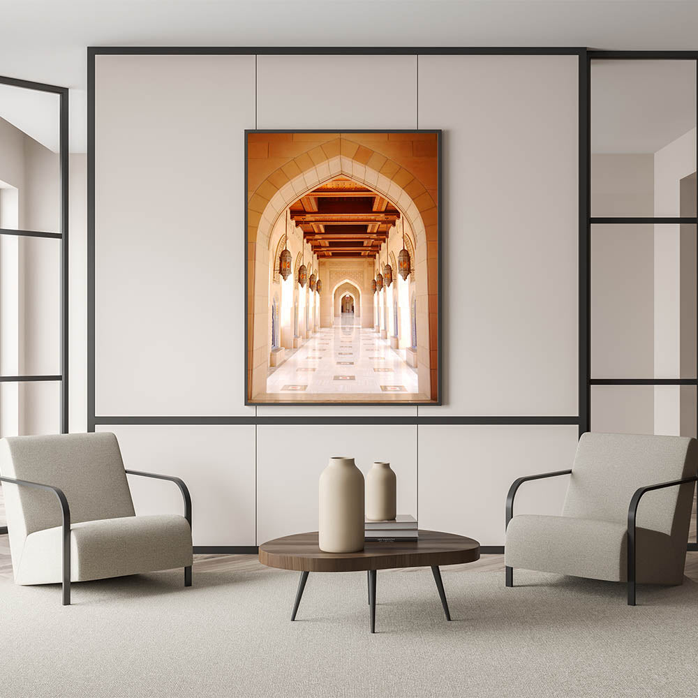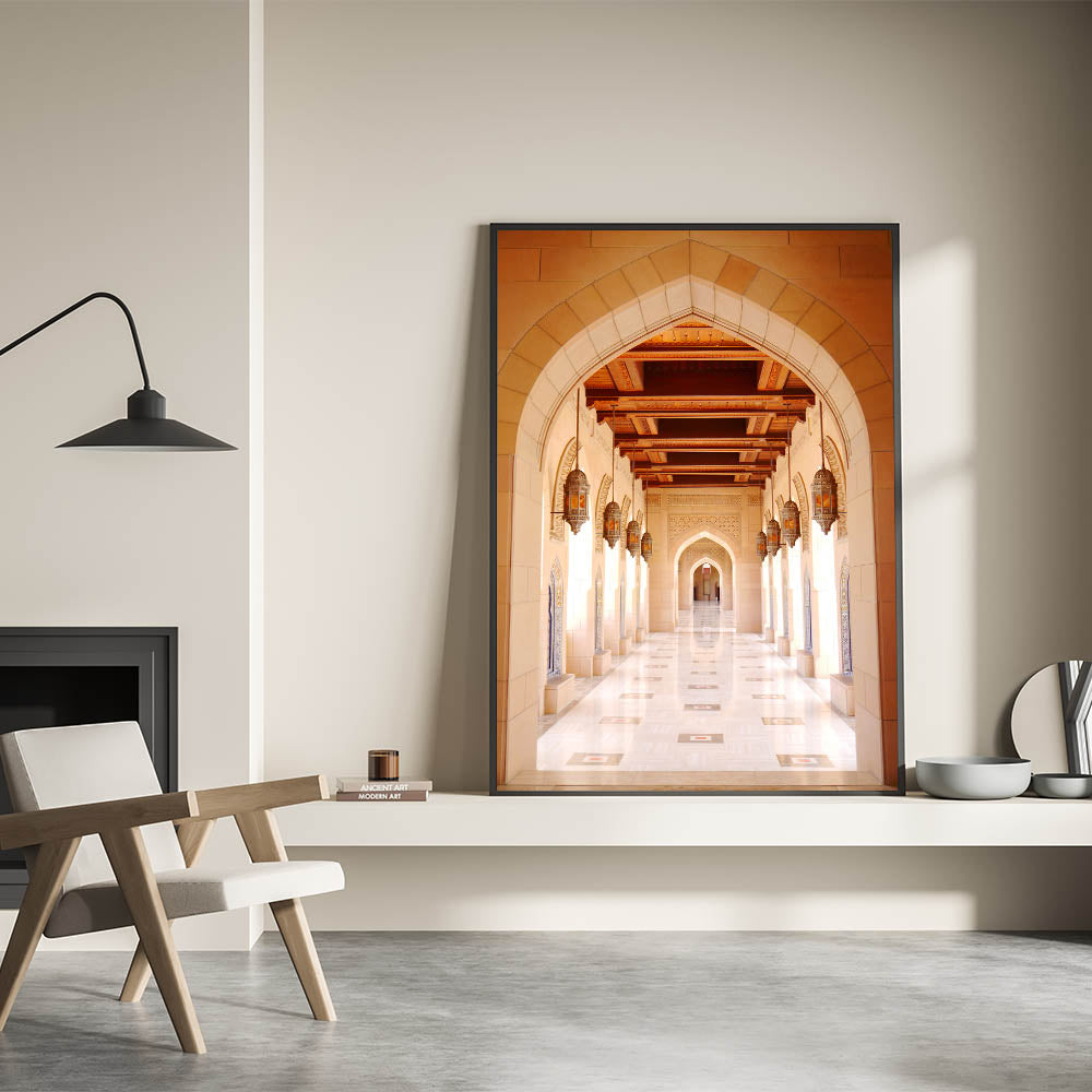 Elegant Mosque Corridor Oman Wall Art – Middle Eastern Architecture Print
