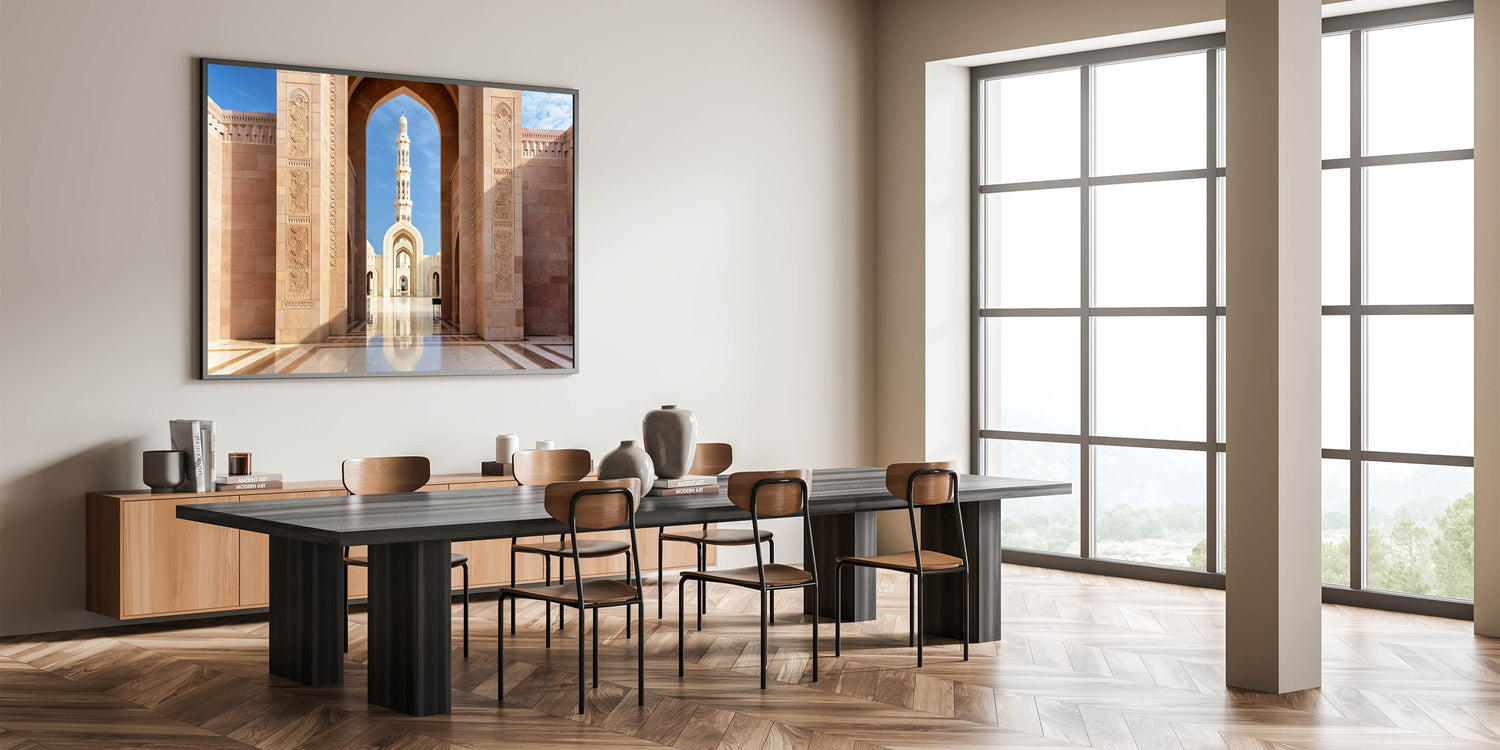 This unique Oman canvas print brings the elegance of the Grand Mosque's architecture into your home, offering a perfect blend of cultural richness and refined artistry. Whether displayed in a traditional or modern space, this piece will elevate your decor with its graceful design.