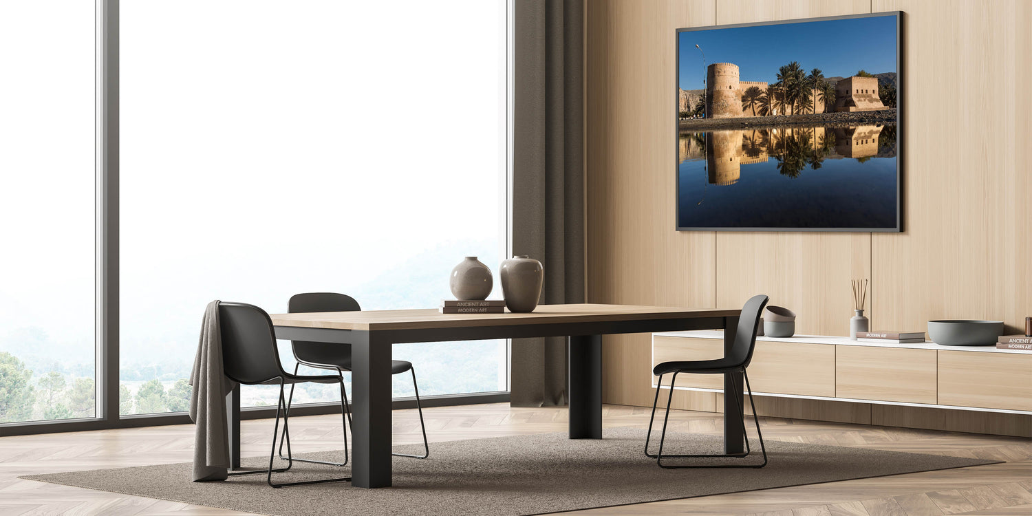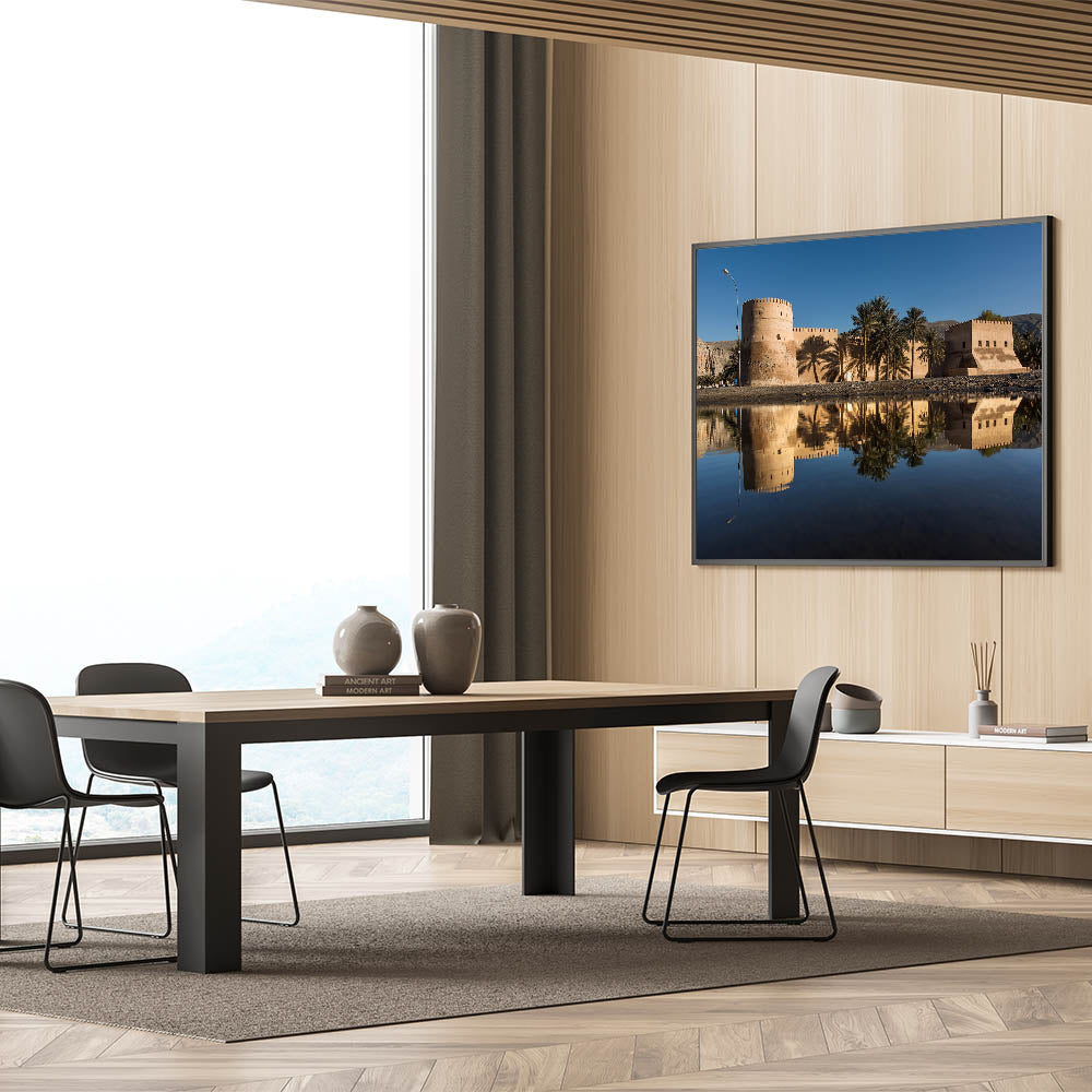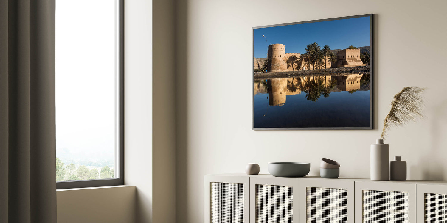 Celebrate the rich history of Oman with this stunning wall art, featuring a beautiful reflection of a historic Omani fort. This high-quality Oman wall art captures the essence of traditional Arabian architecture, making it an ideal addition for anyone seeking to add a touch of history and culture to their decor. The fort’s detailed stonework and the serene reflection in the water create a captivating piece of art that brings the beauty of Oman’s architectural heritage into your home.