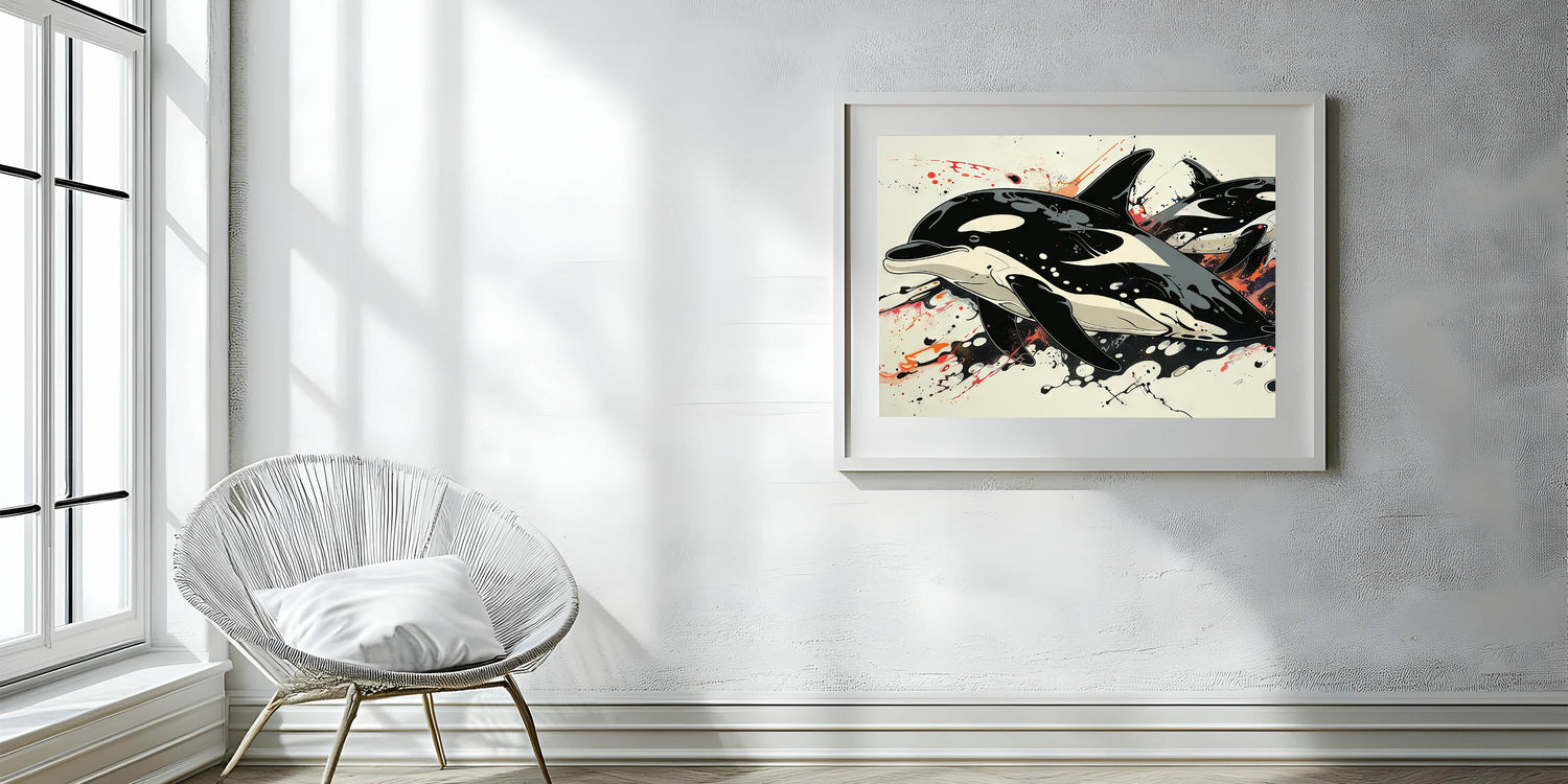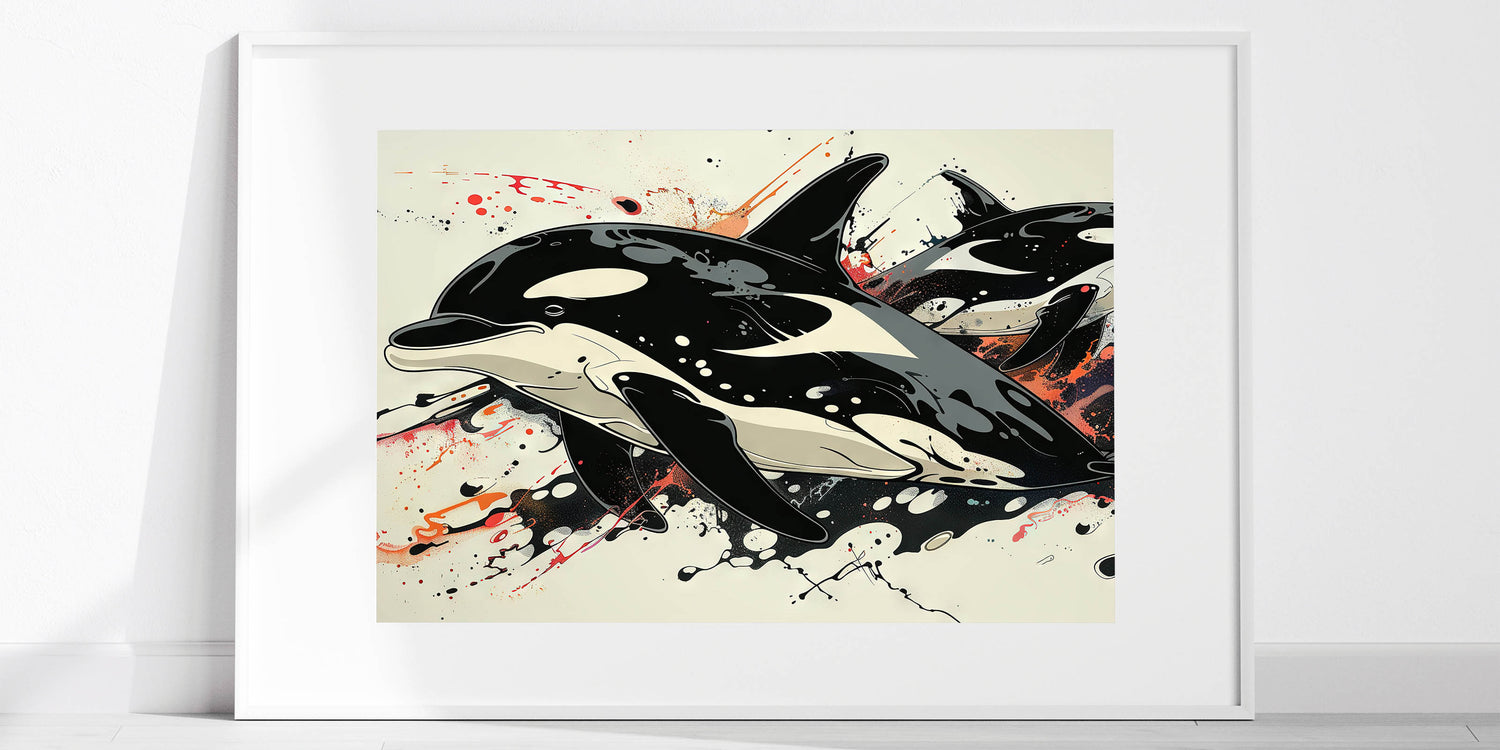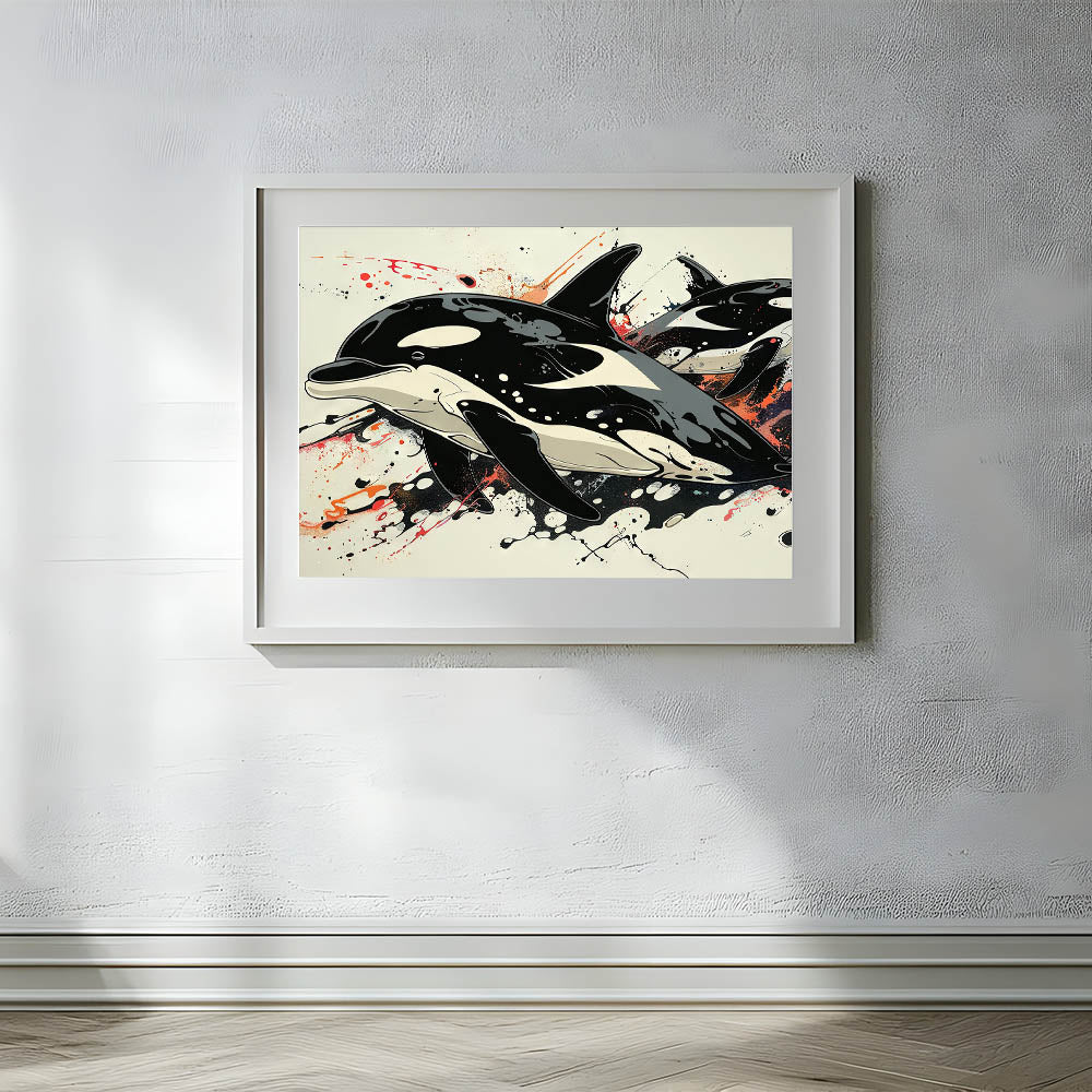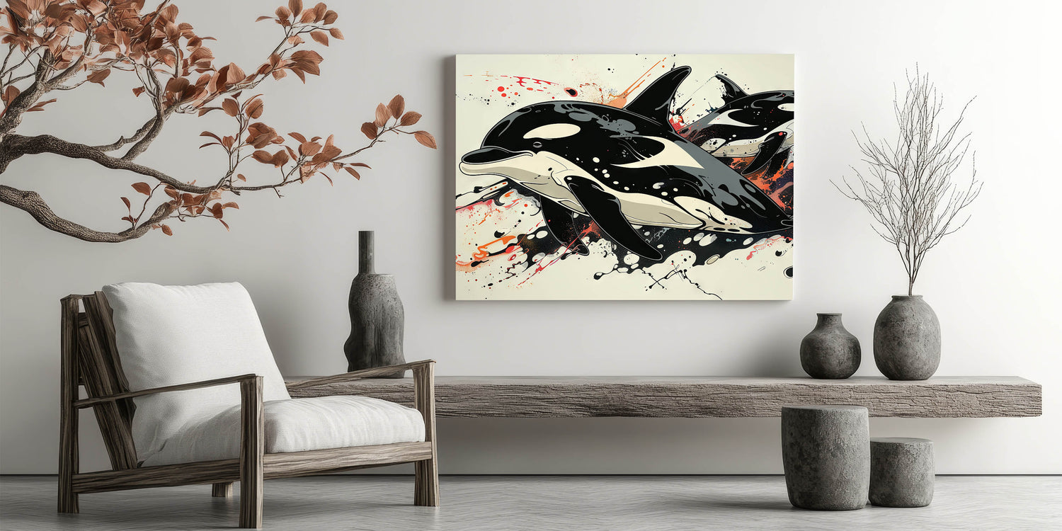 Infuse your space with energy and creativity with this abstract orca wall art. This striking piece combines the powerful form of orcas with vibrant splashes of color, creating a dynamic and modern interpretation of marine life. The bold design and lively composition make this artwork an eye-catching addition to any room.