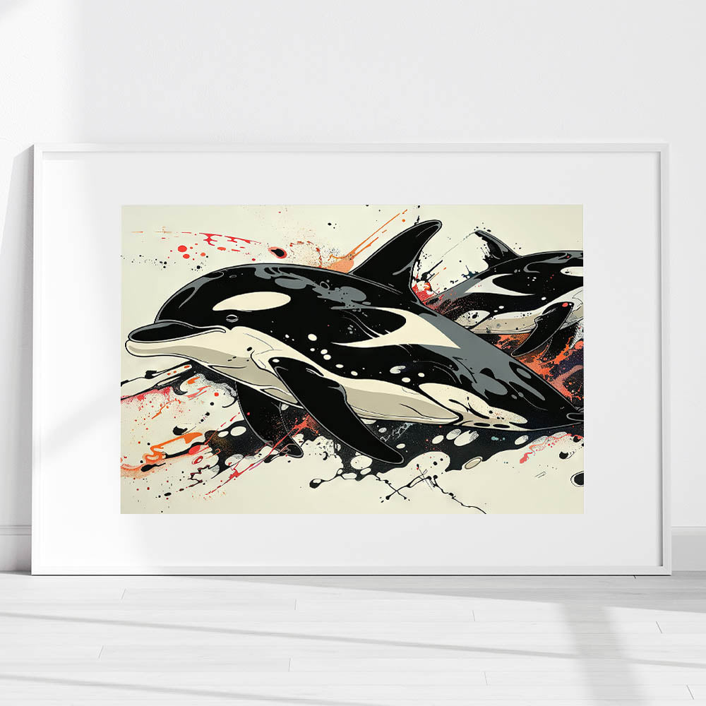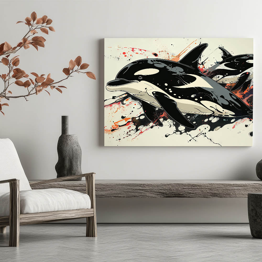 Abstract Orca Wall Art - Vibrant Ocean Life Canvas & Print Decor