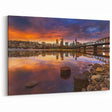 Experience the charm of Portland at sunset with this captivating wall art, featuring the iconic city skyline beautifully reflected in the river. The warm glow of the sunset enhances the vibrant colors, making it a perfect centerpiece for any room. Available in various formats such as Stretched Canvas, Framed Canvas, Acrylic Glass, Framed Acrylic Glass, Framed Print, Rolled Canvas, and Rolled Print, this artwork fits both modern and traditional decor styles.